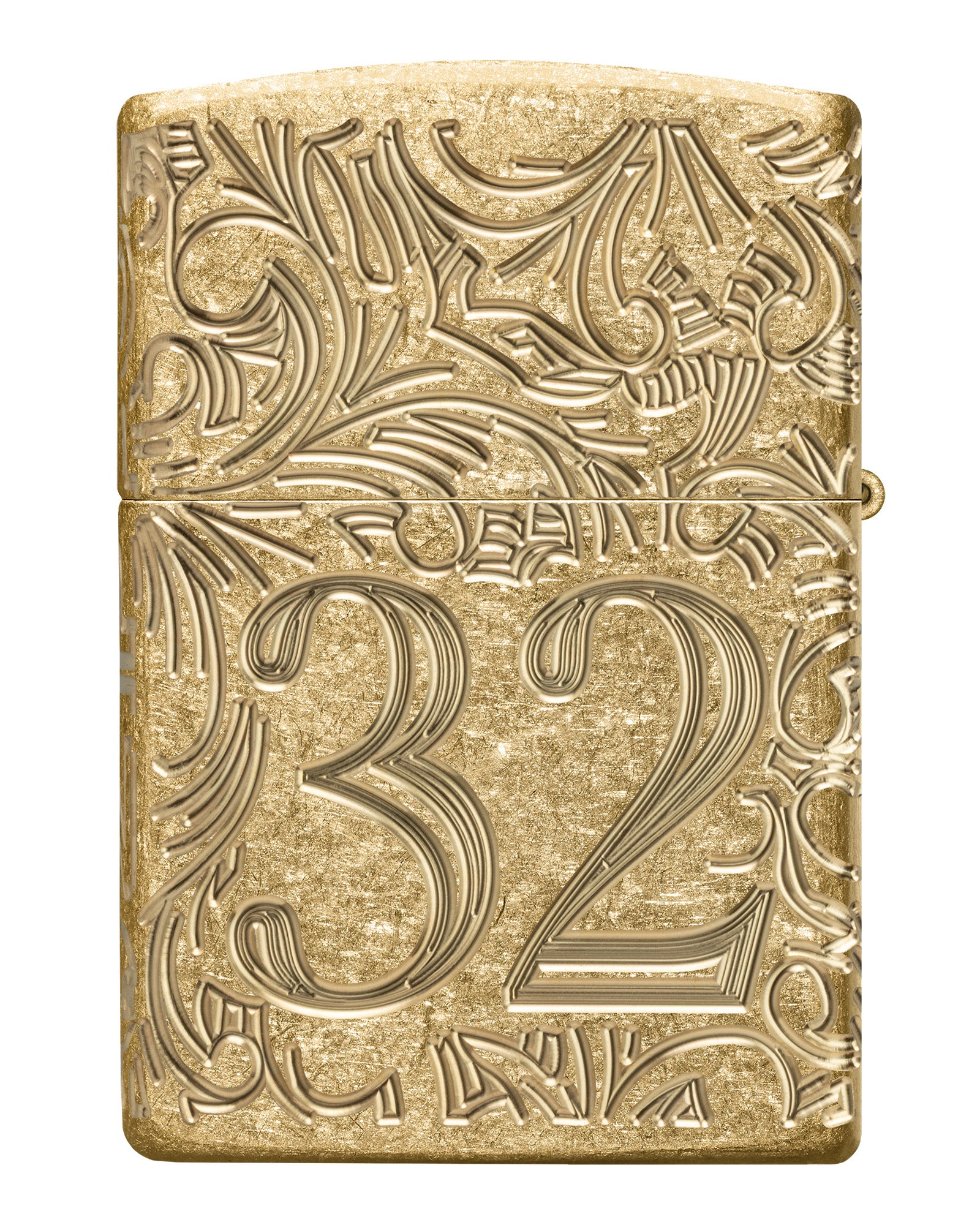 Zippo's founding year is elegantly displayed on this sophisticated Armor® Tumbled Brass lighter. Surrounded by swirling, intricate filigree, 1932 spans the front and reverse surfaces in a seamless MultiCut design.
