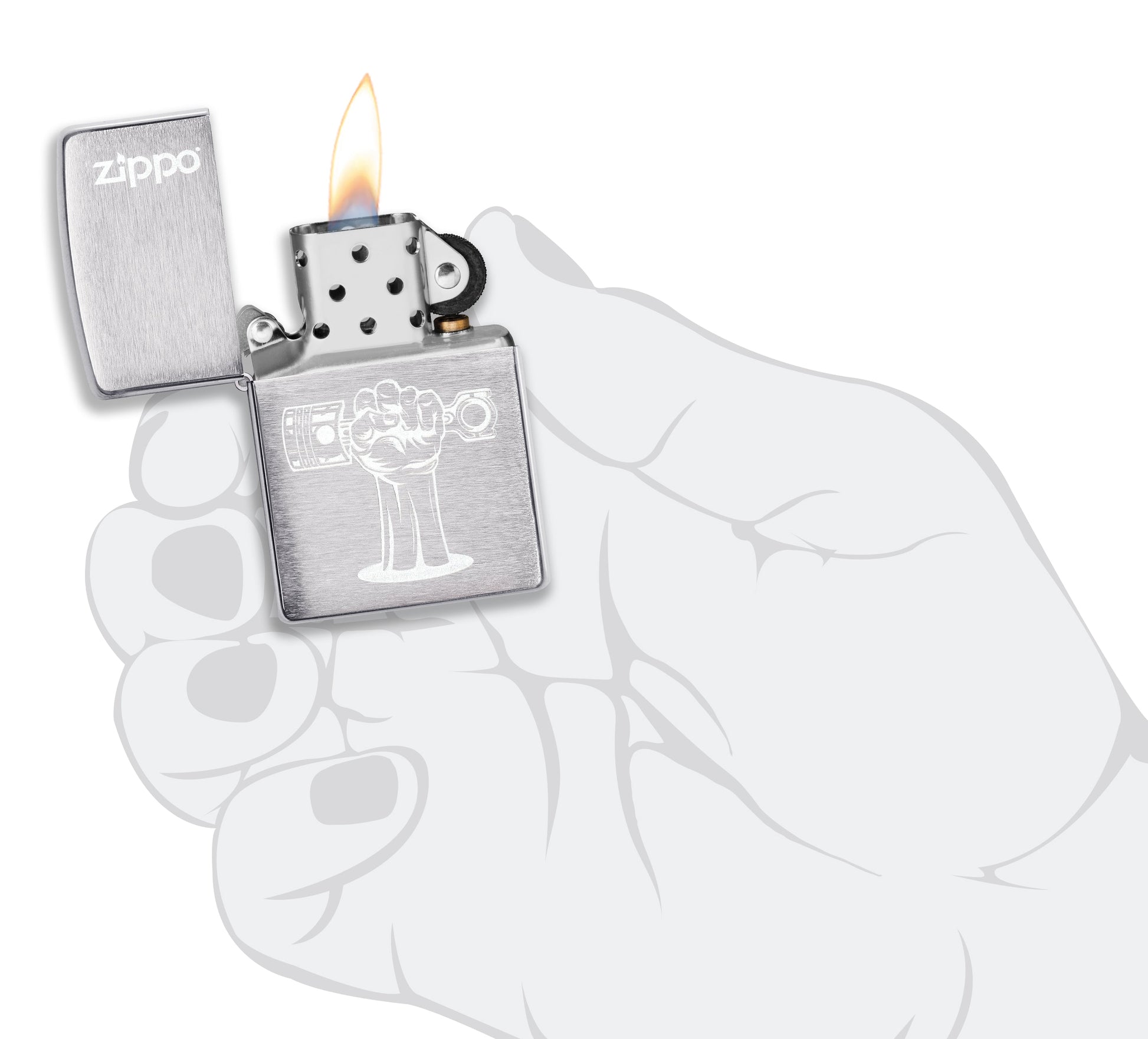 - Genuine Zippo windproof lighter with the unmistakable Zippo "click".