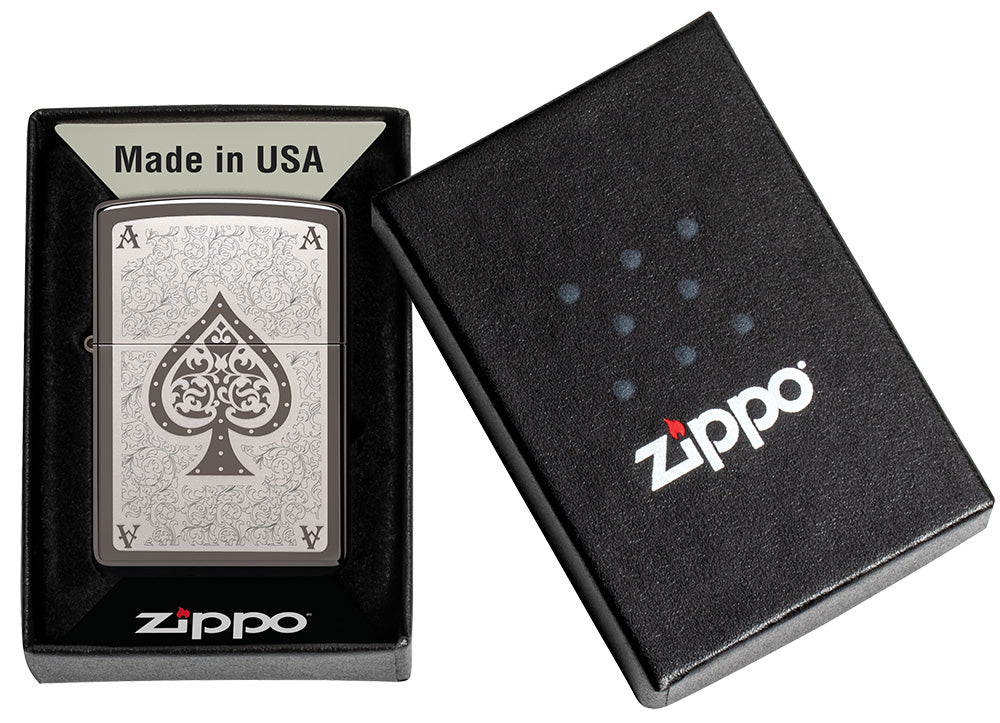 The Ace Filigree impresses with its artfully crafted design. With an elegant surface and precise laser engraving, it is a true masterpiece. The highlight of this Zippo lighter is the filigree motif of an ace engraved on the front of the lighter. The ace symbolises luck, strength and success and gives the lighter a touch of sophistication and individuality.