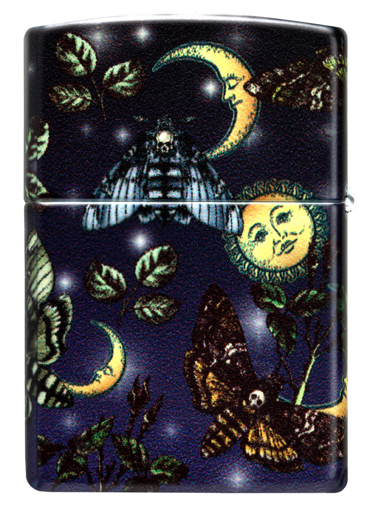 Butterflies, skulls, the sun and the moon romantically mingle in blissful balance in this stunning 540° Color Image design, which seamlessly surrounds the entire lighter.