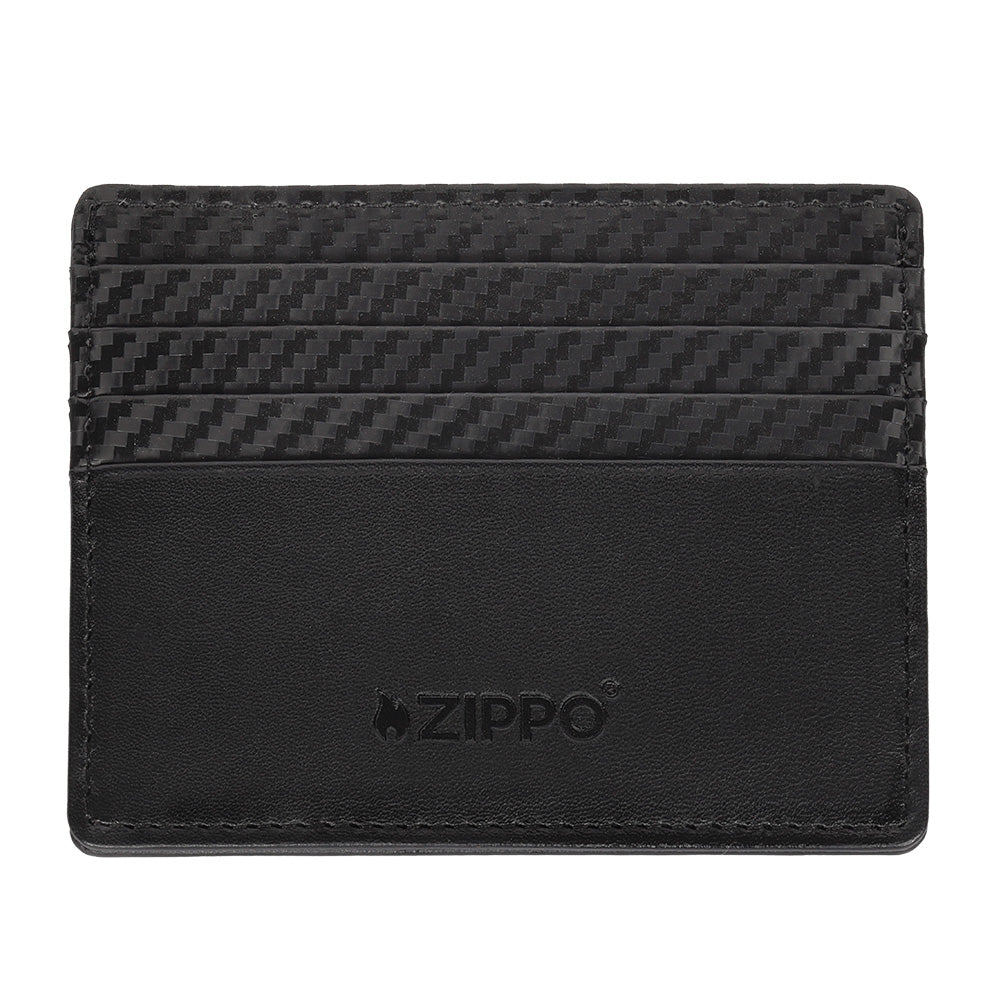 Add modern styling to your everyday essentials with this carbon-fibre patterned card holder from Zippo. This sleek, genuine leather case offers compact storage for up to nine credit cards, plus features subtle Zippo branding, RFID-blocking technology and luxurious jacquard lining.