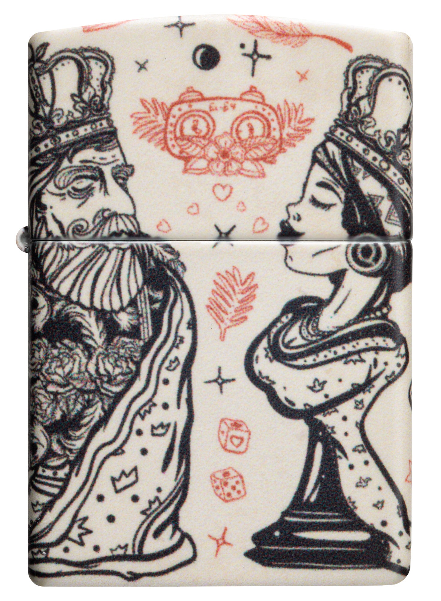 Show off your skill and strategy with this 540 Color lighter. Inspired by the game of chess, the Queen prepares to conquer the King while the Rook admits defeat in the whimsical, all-over design.
