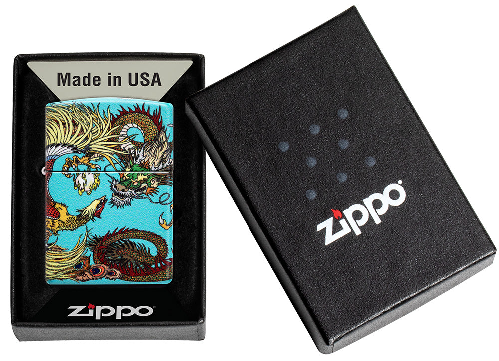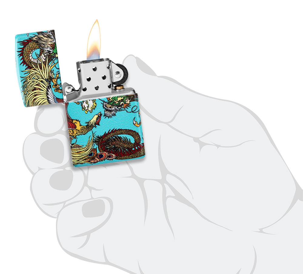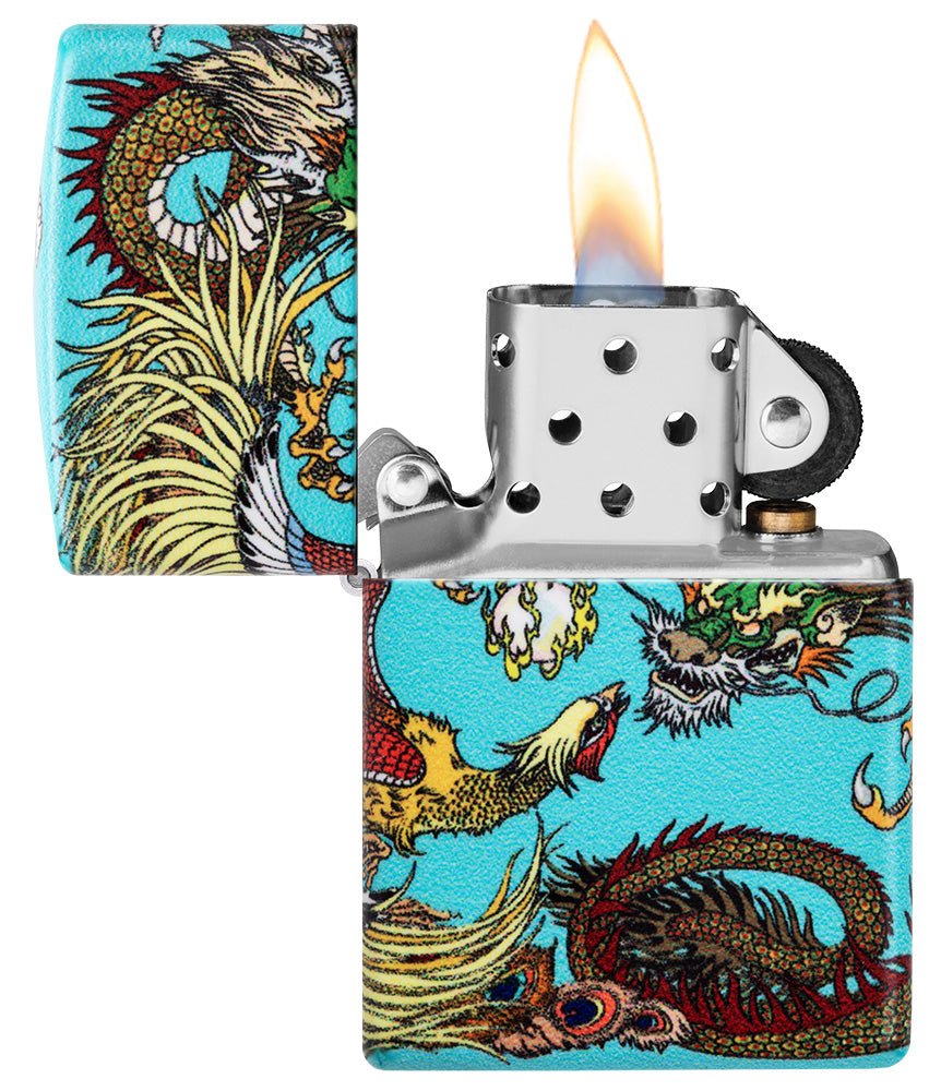 Taking inspiration from the traditional Chinese artistic style, a pheonix and dragon battle on all sides of this brilliantly detailed 540 Color lighter.