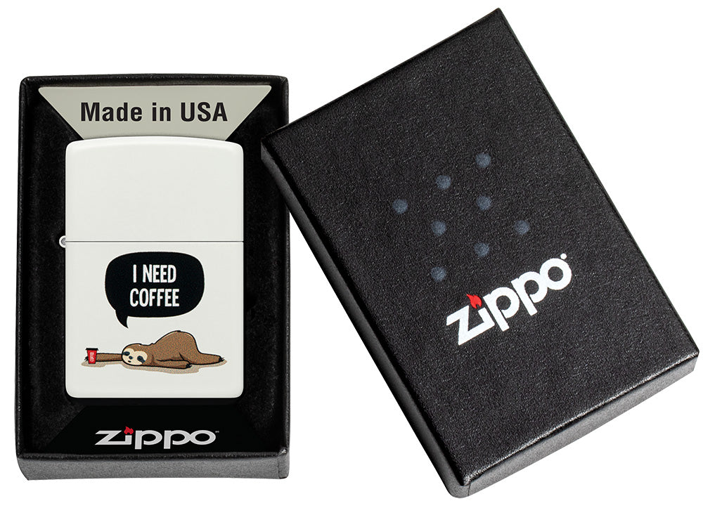 Most of us can relate to this whimsical Color Image design! A tired sloth drags itself across the surface of this White Matte lighter on the noble quest for coffee.