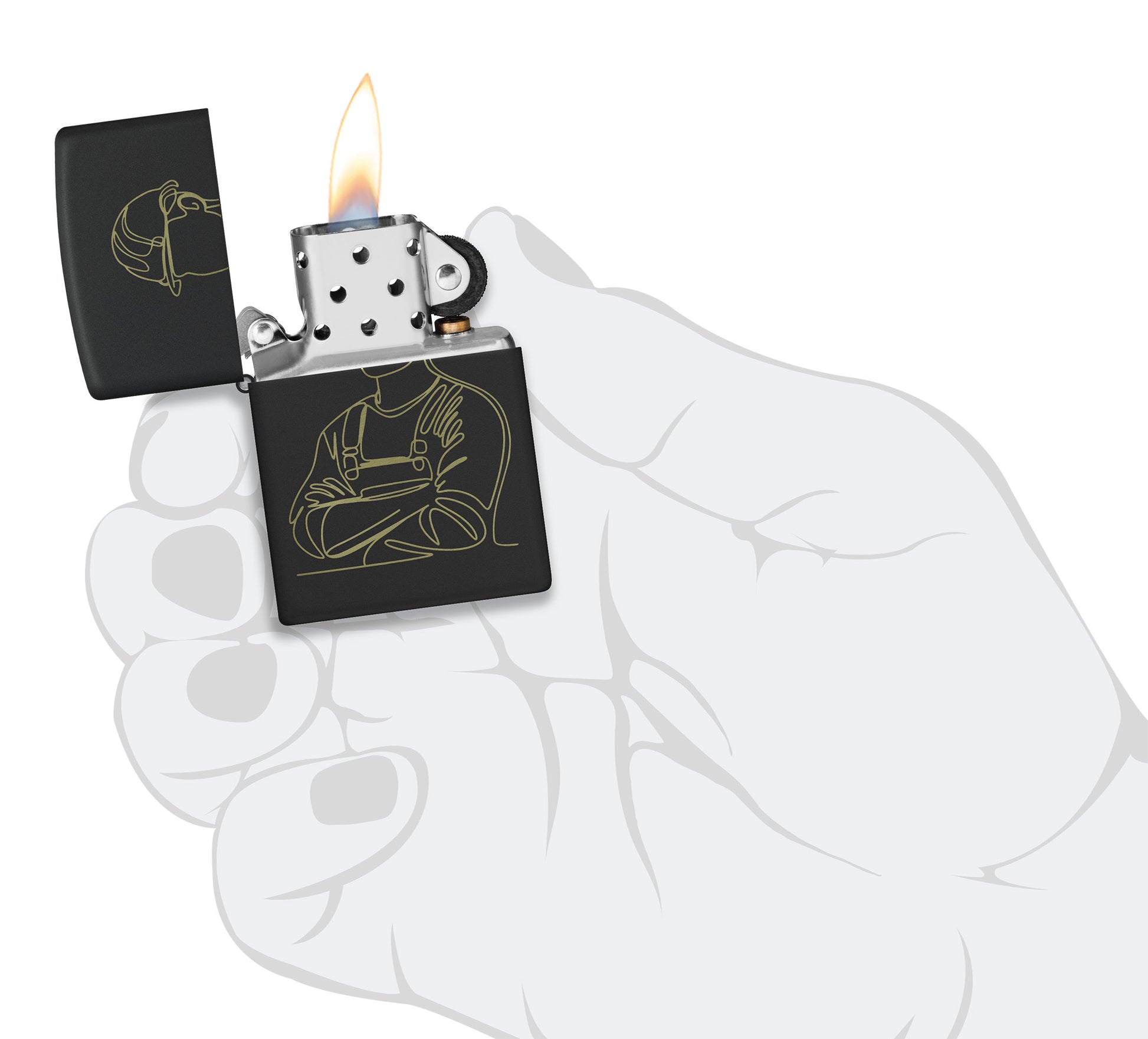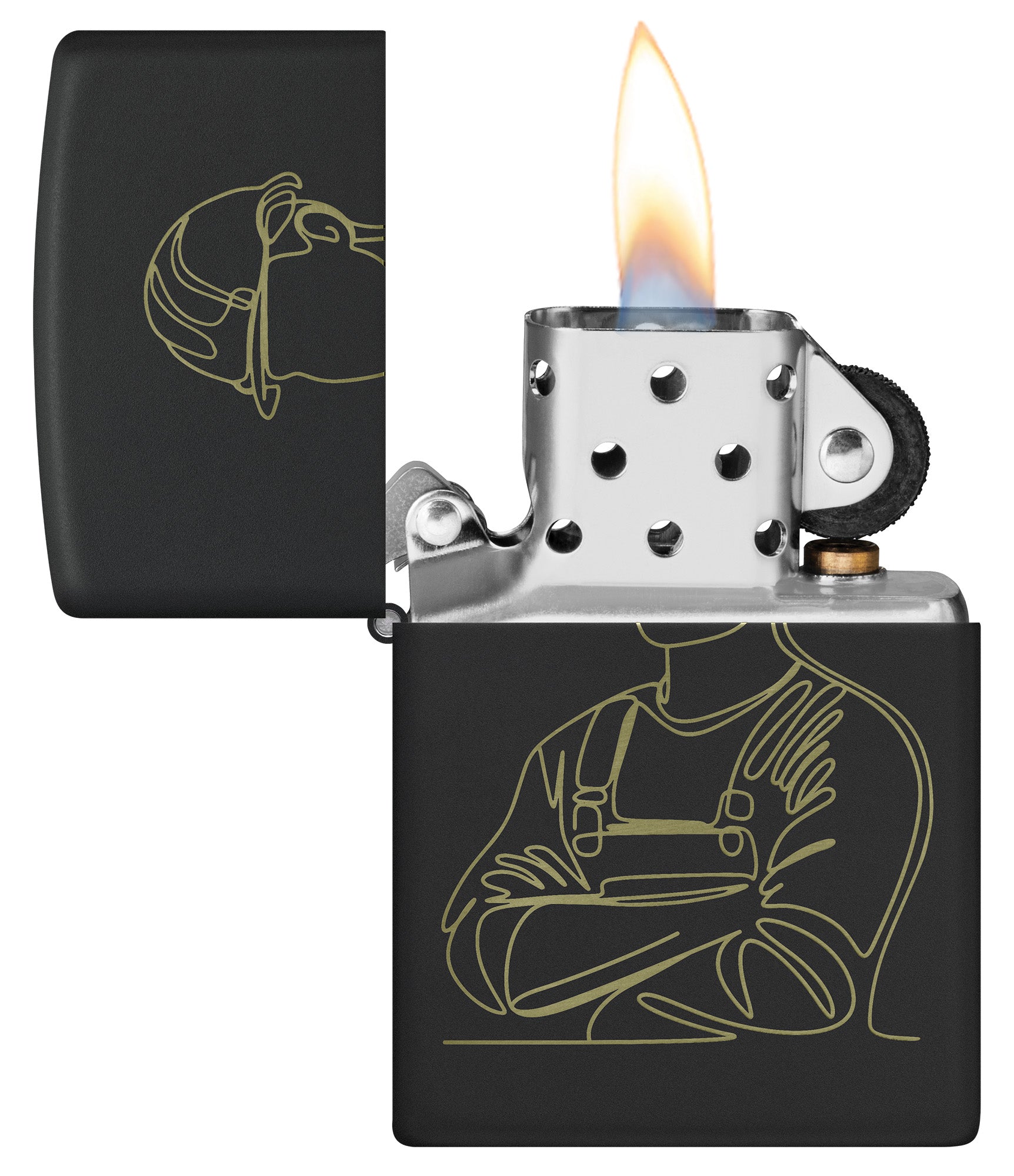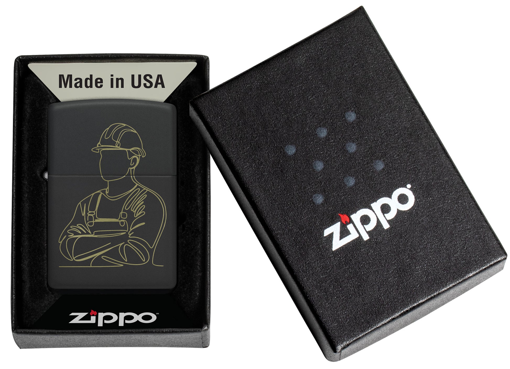 Perfect for any tradesperson, this classic Black Matte lighter honors their efforts with its minimalist Laser Engrave design depicting a worker in a hard hat.