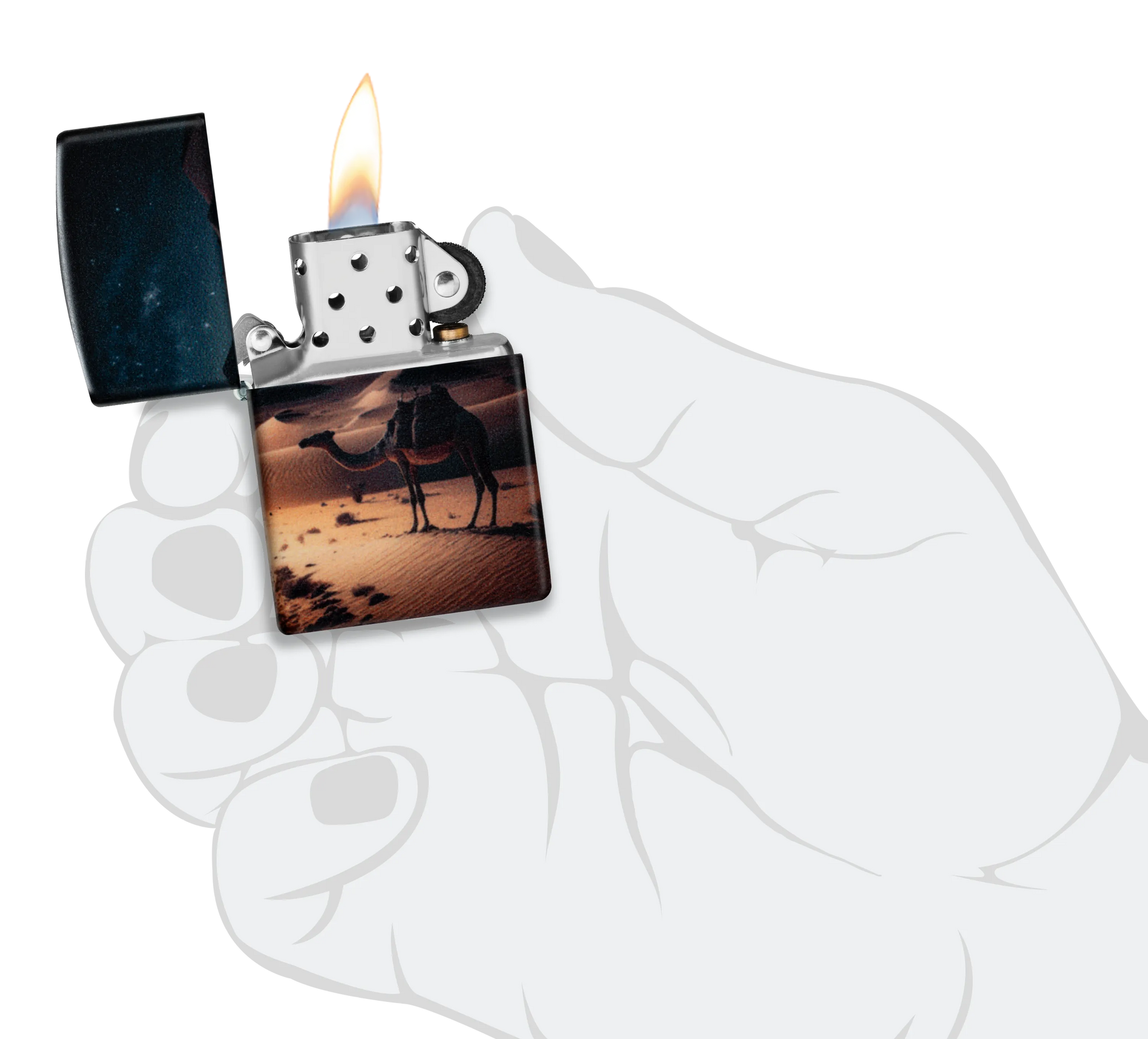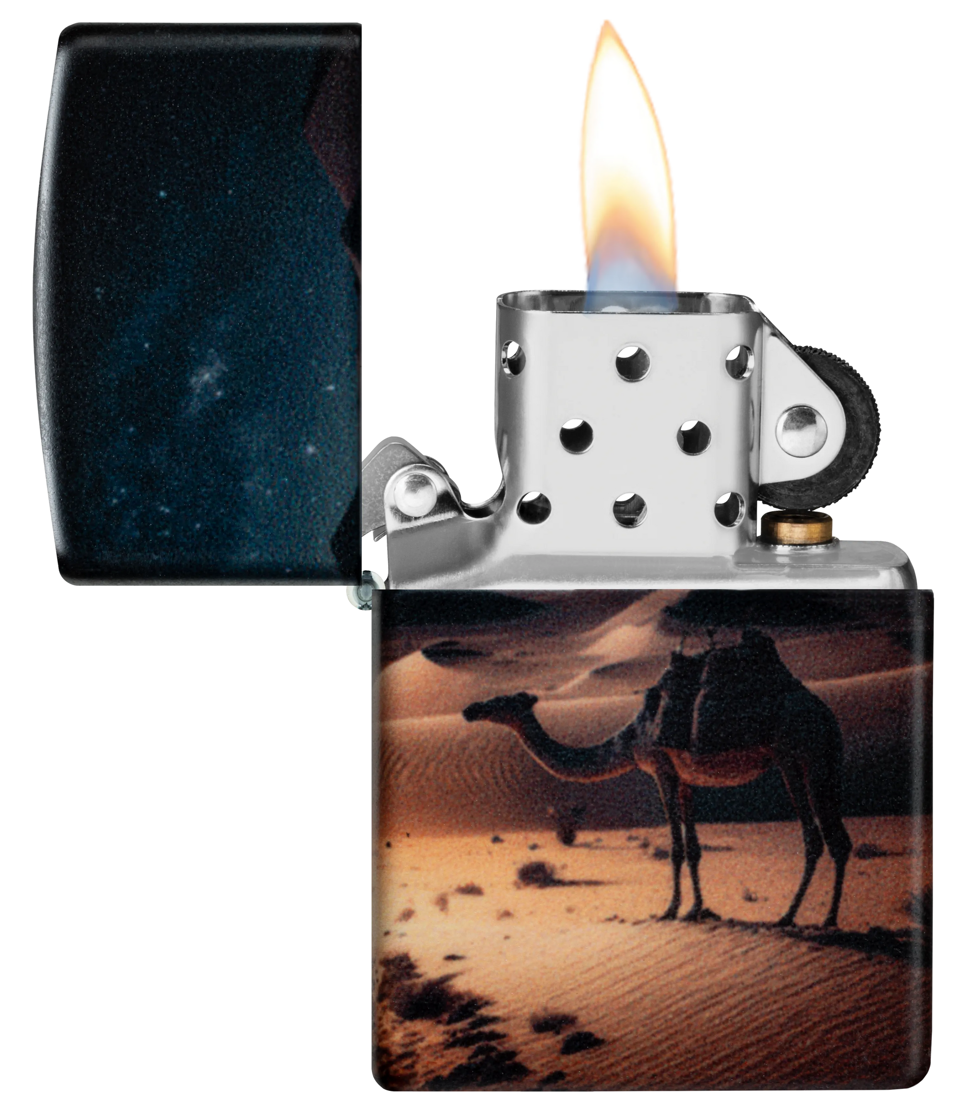 - Genuine Zippo windproof lighter with the unmistakable Zippo "click".