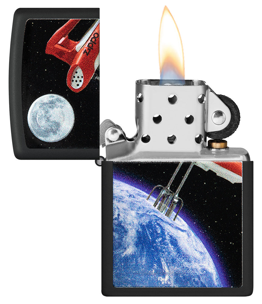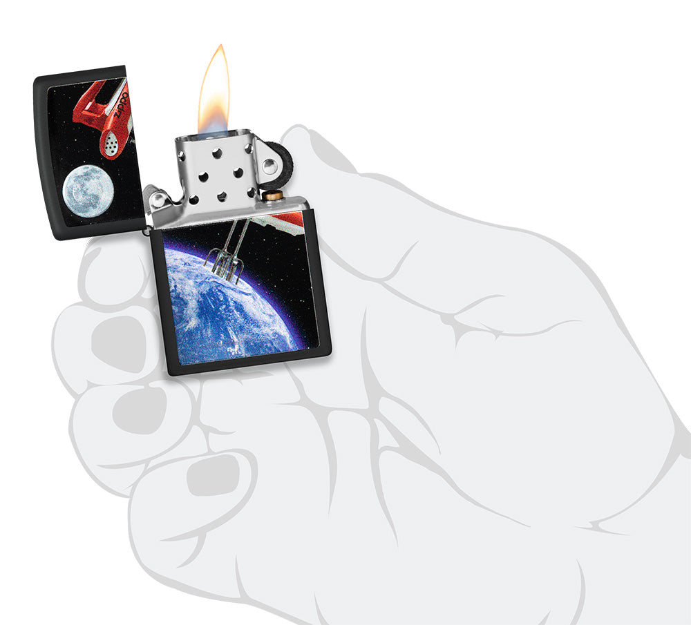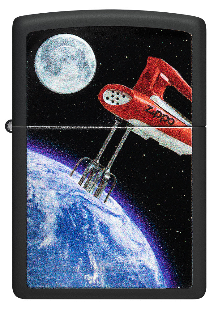 A giant Zippo mixer whips the Earth's clouds into a light and airy froth on this Black Matte lighter. The Texture Print design rises from the lighter's surface for a three-dimensional effect.