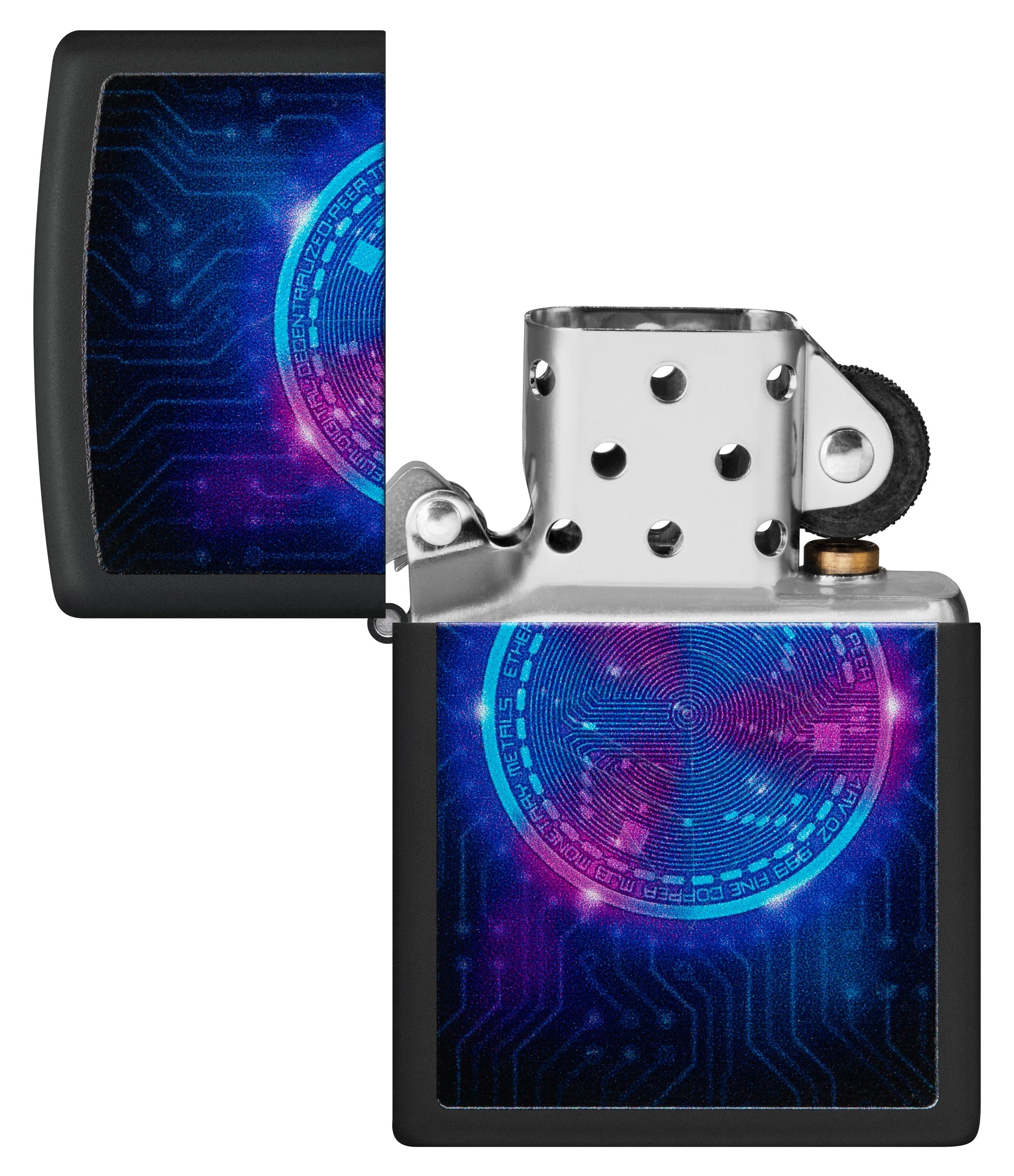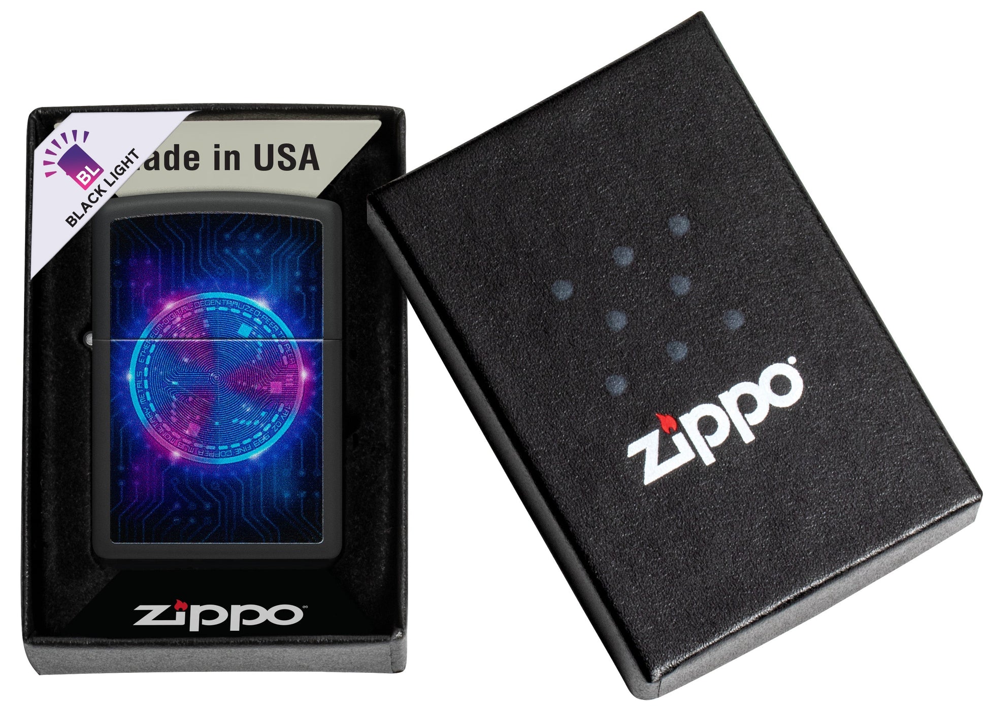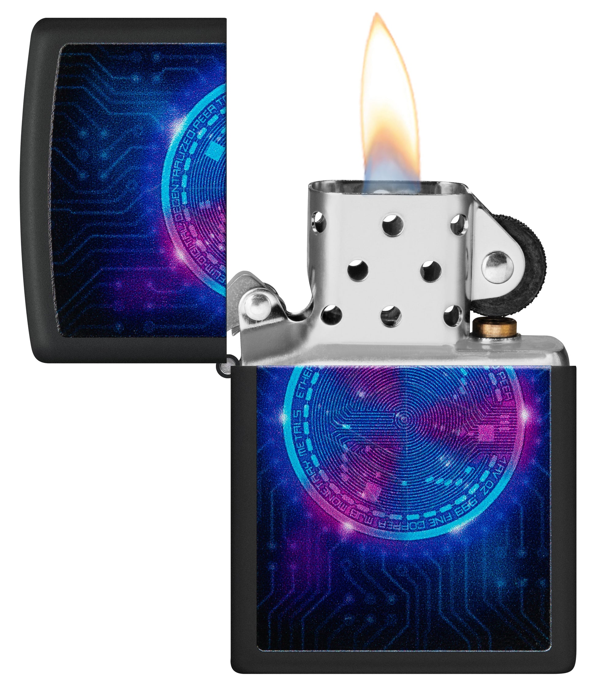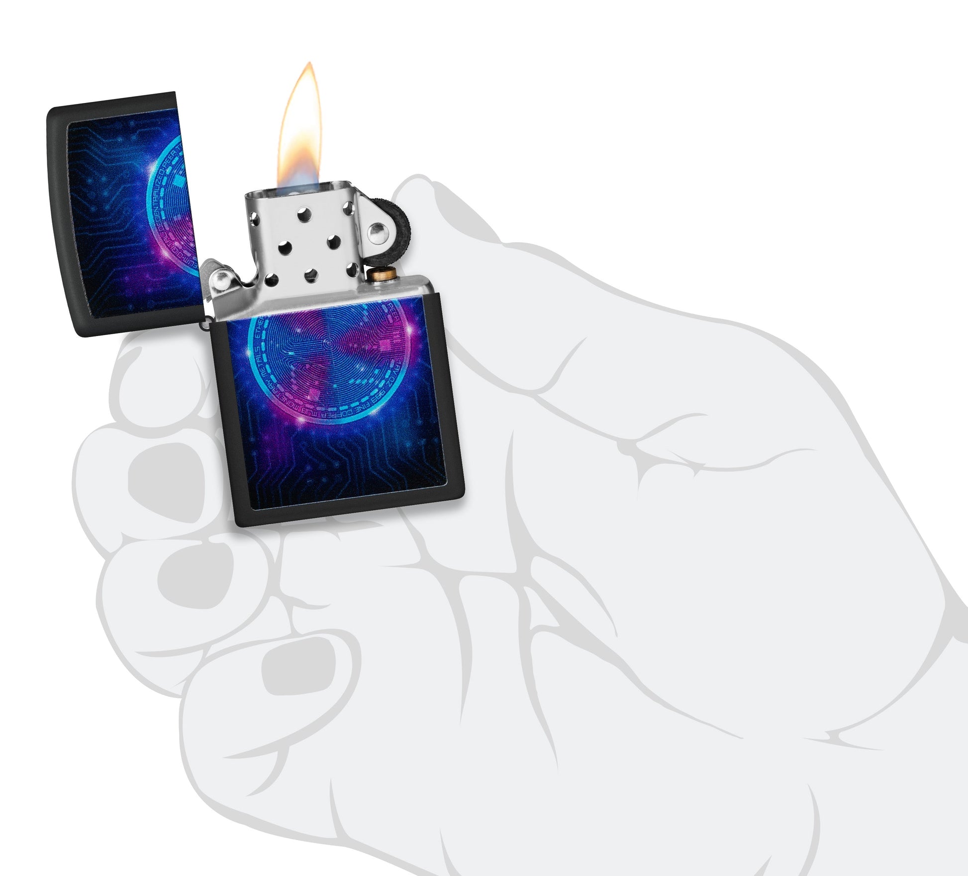 Das Etherium-Design ist ein beeindruckendes Feuerzeug, das die faszinierende Welt der Kryptowährung Etherium verkörpert. Mit seiner markanten Oberfläche in Black Matte ist es ein echter Hingucker für alle Fans von Kryptowährungen und Technologie. Dieses Feuerzeug zeichnet sich nicht nur durch sein Aussehen aus, sondern hat auch eine besondere Eigenschaft: Es leuchtet unter Schwarzlicht. Die Black Matte-Oberfläche wirkt unter Schwarzlicht geheimnisvoll und futuristisch, was dem Feuerzeug einen zusätzlichen Reiz verleiht.