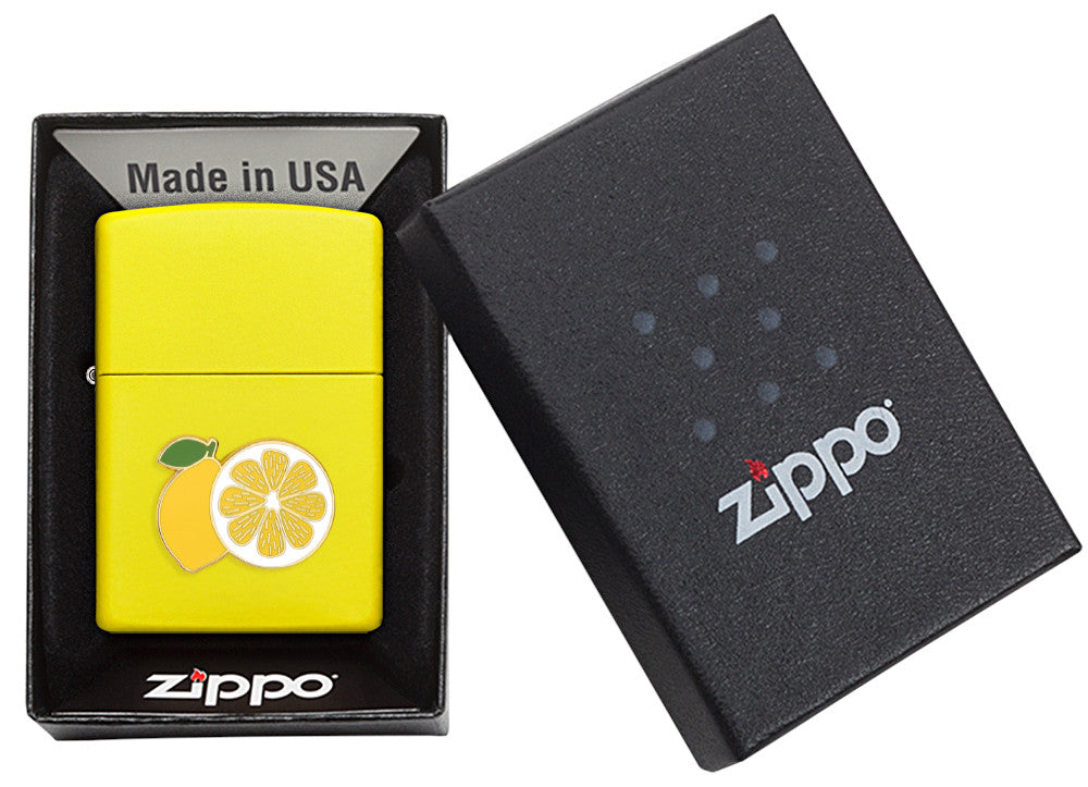 This bright and citrusy Yellow Matte lighter features a fresh, ripe lemon on a vibrant metal and enamel emblem.