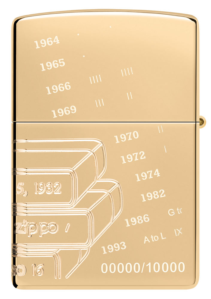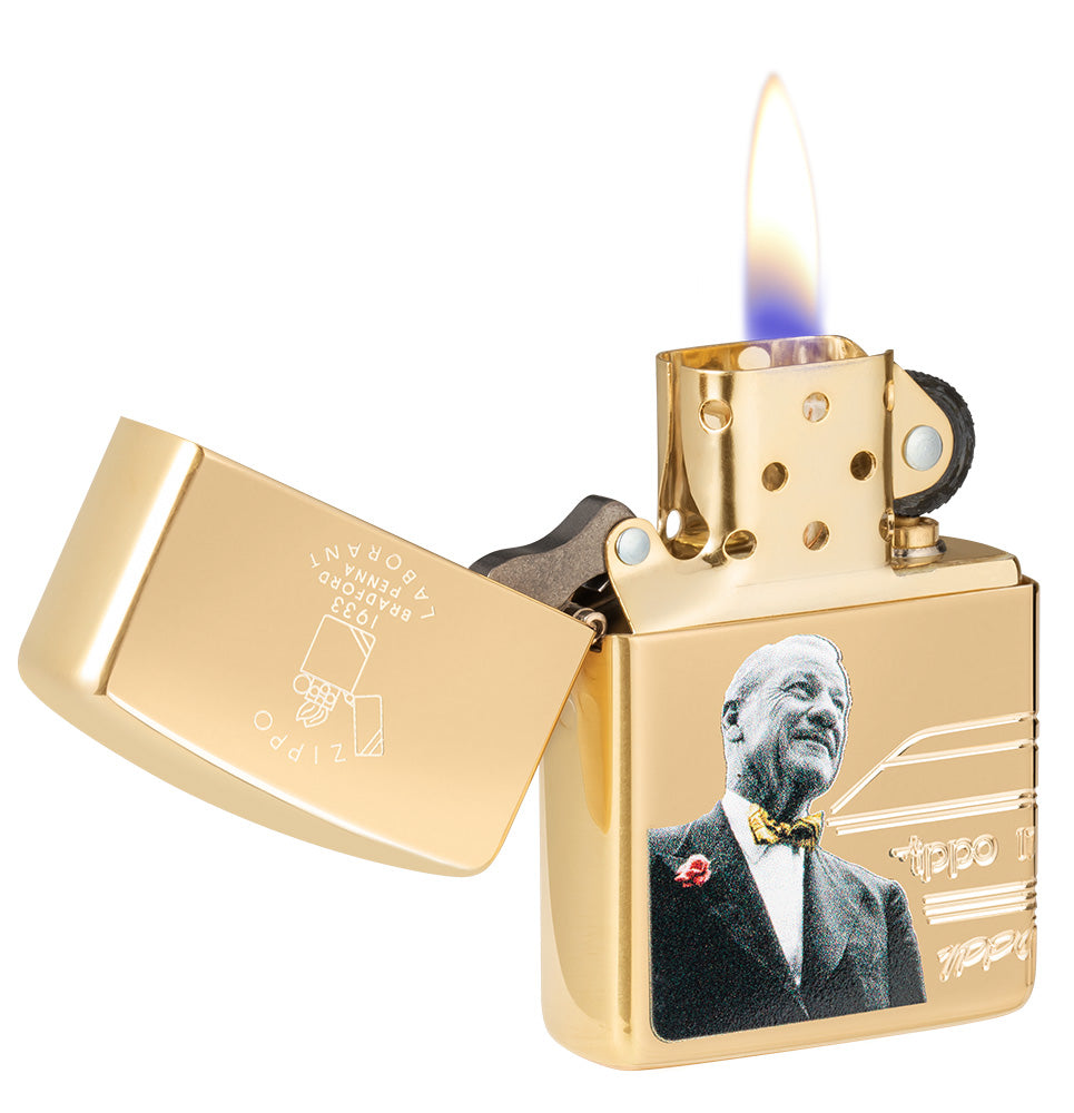 Available exclusively at Zippo-owned websites, our Zippo Days Collectible features a Color Image portrait of George G. Blaisdell over a MultiCut design of stylized Zippo bottom stamps, which extends around to the back of the Armor® High Polish Brass case and commemorates Zippo’s founding year.