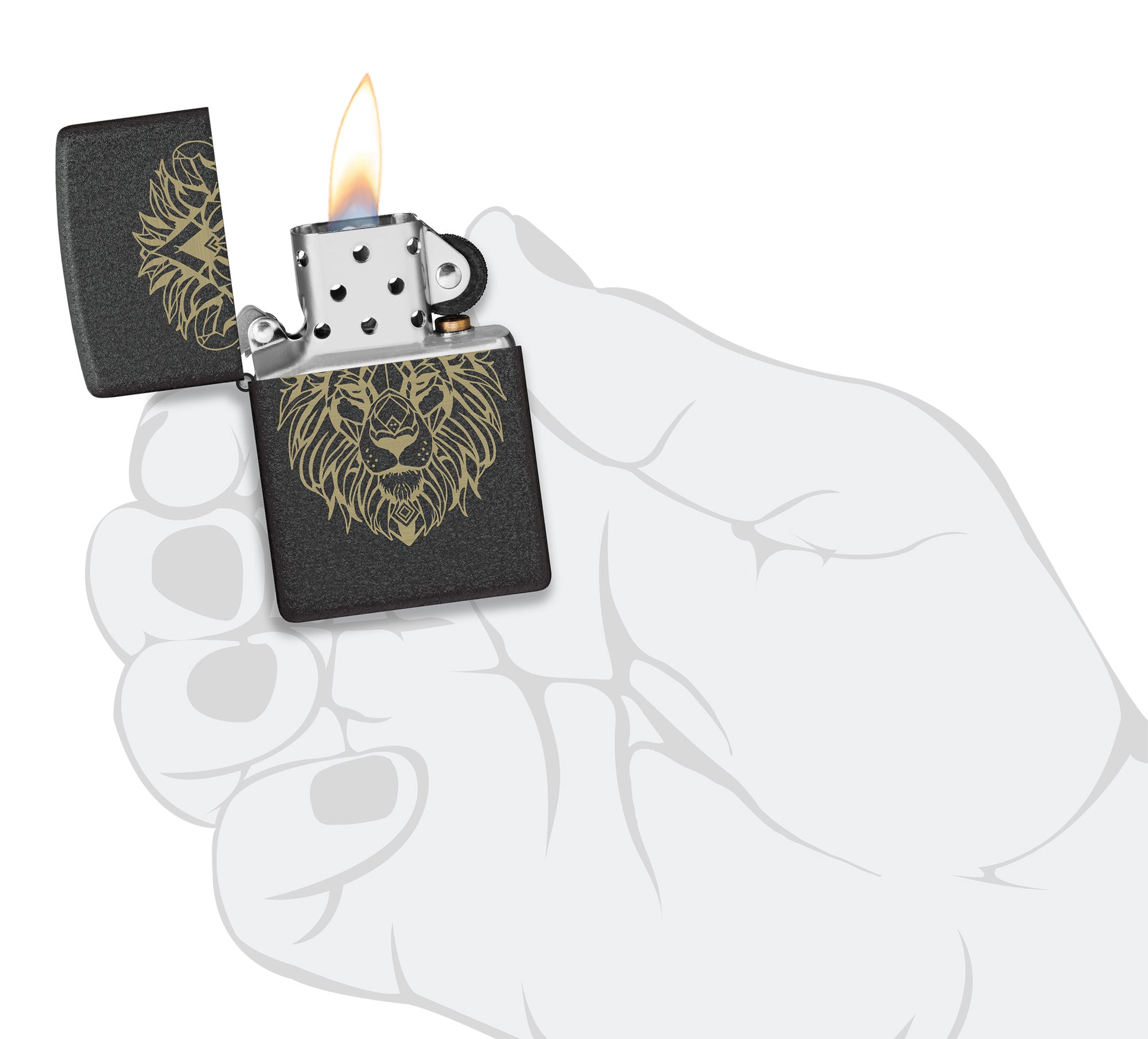 Intricate lines and shapes form a perfectly symmetrical lion on thie classic Black Crackle® lighter in a crisp Laser Engrave design.