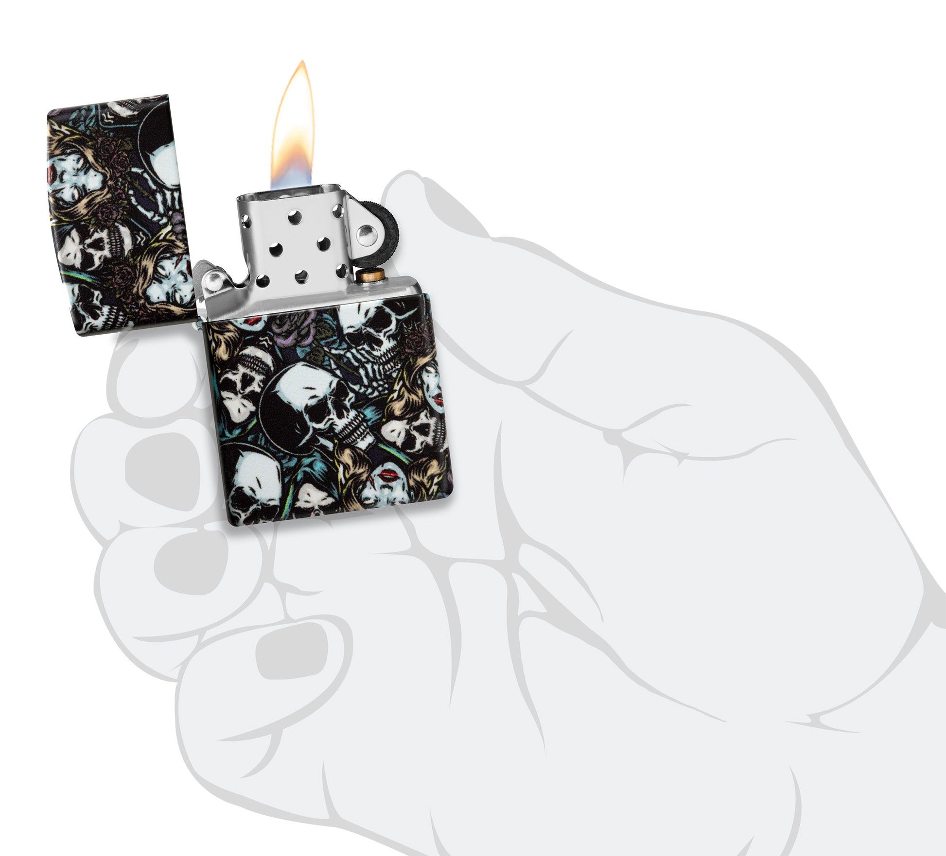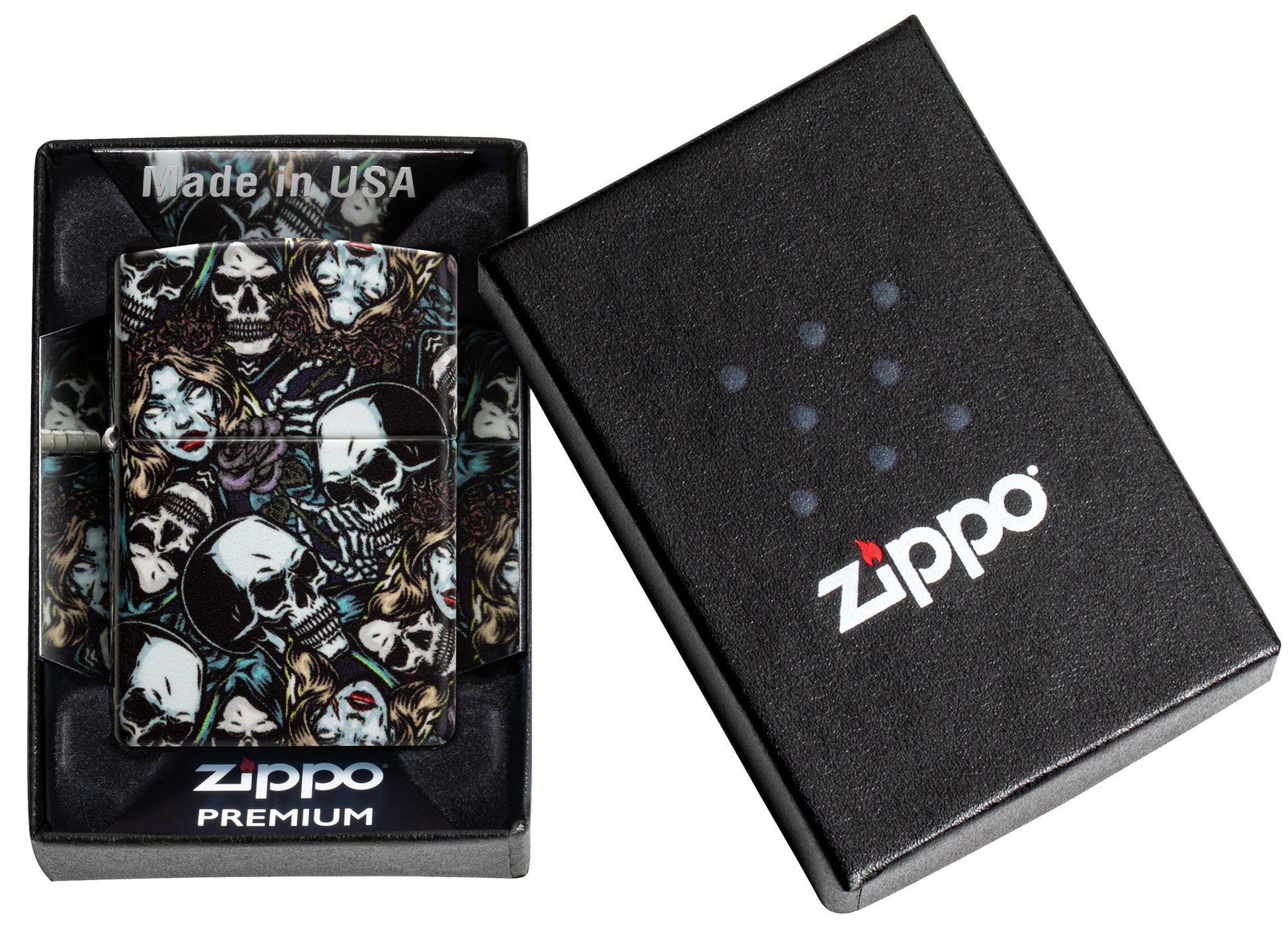 - Genuine Zippo windproof lighter with the unmistakable Zippo "click".