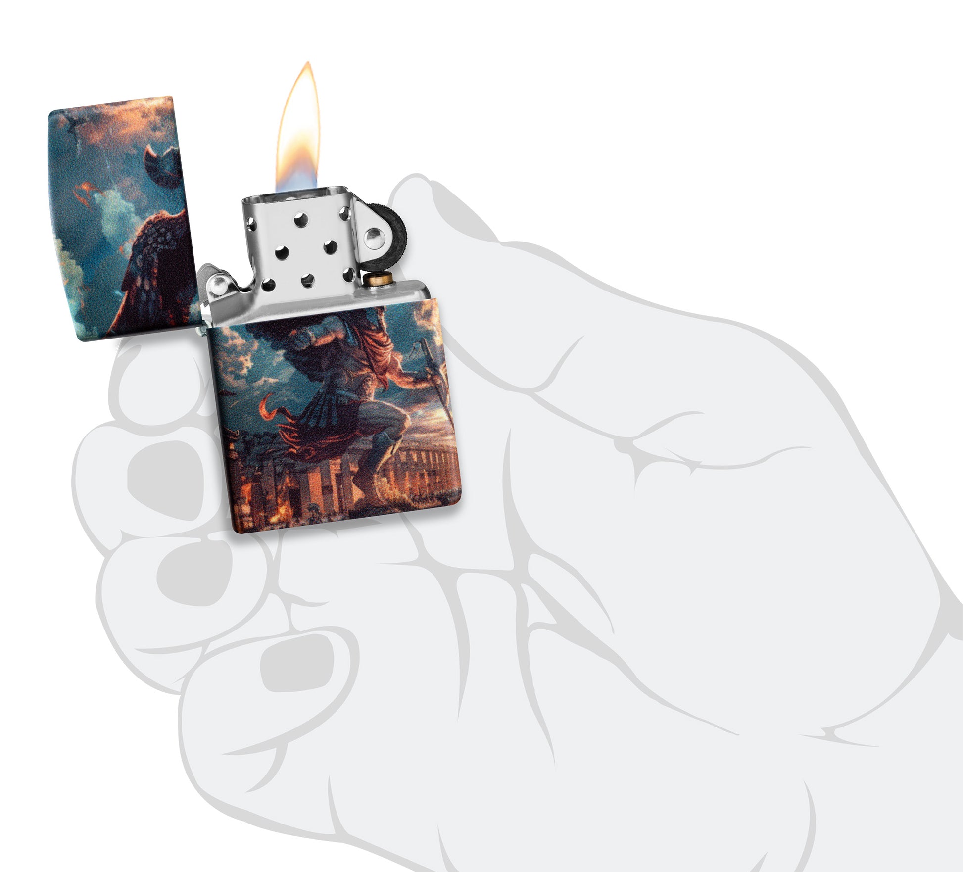 Ares, the Greek god of war, and Zeus, the god of the sky, engage in battle on all sides of this 540 Color lighter in a thrilling, vibrant design.