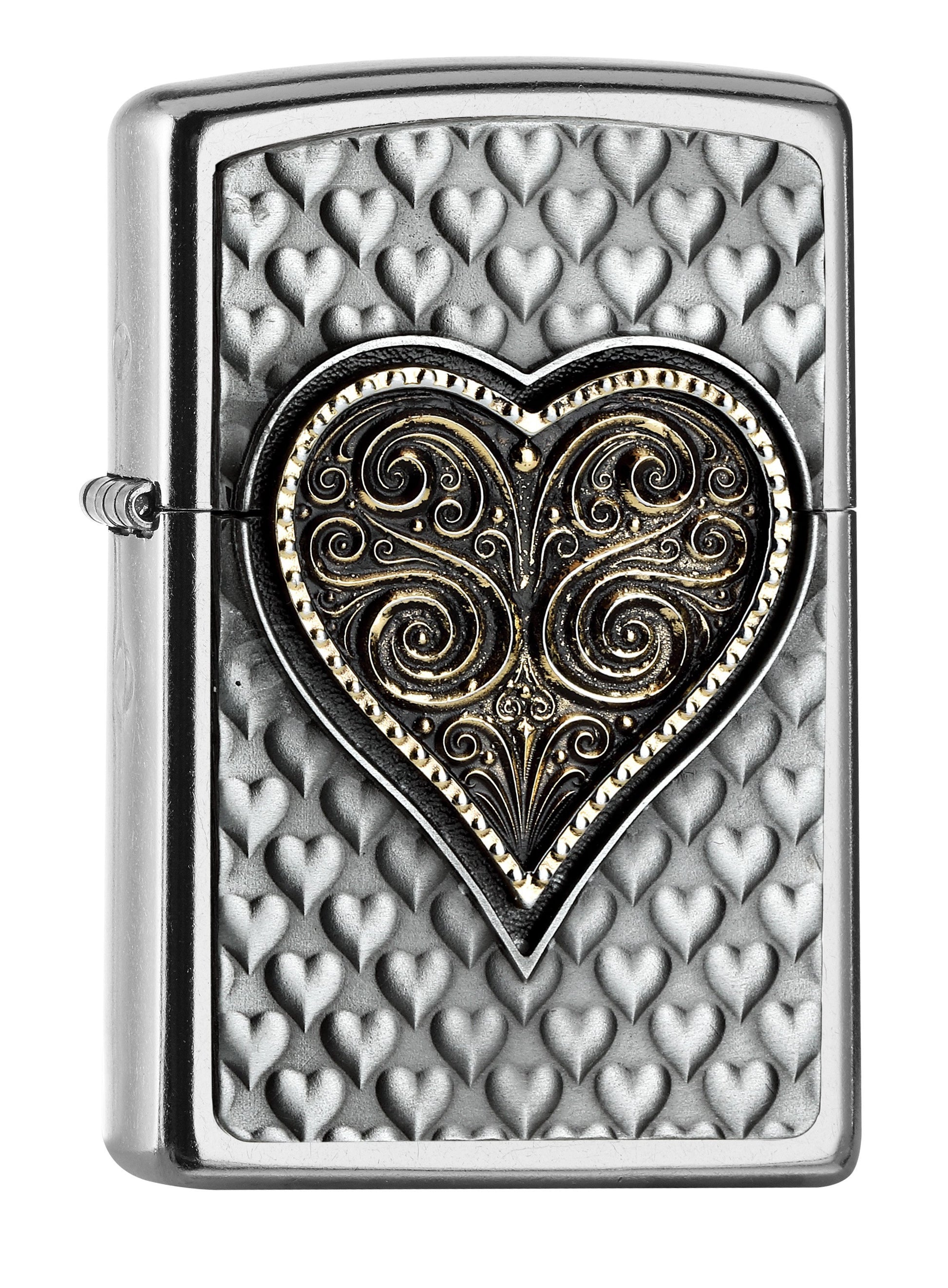 Give this lighter to your love! A detailed Emblem Heart design on a Street Chrome™ lighter. Comes packaged in a gift box. For optimal performance fill with Zippo lighter fuel.