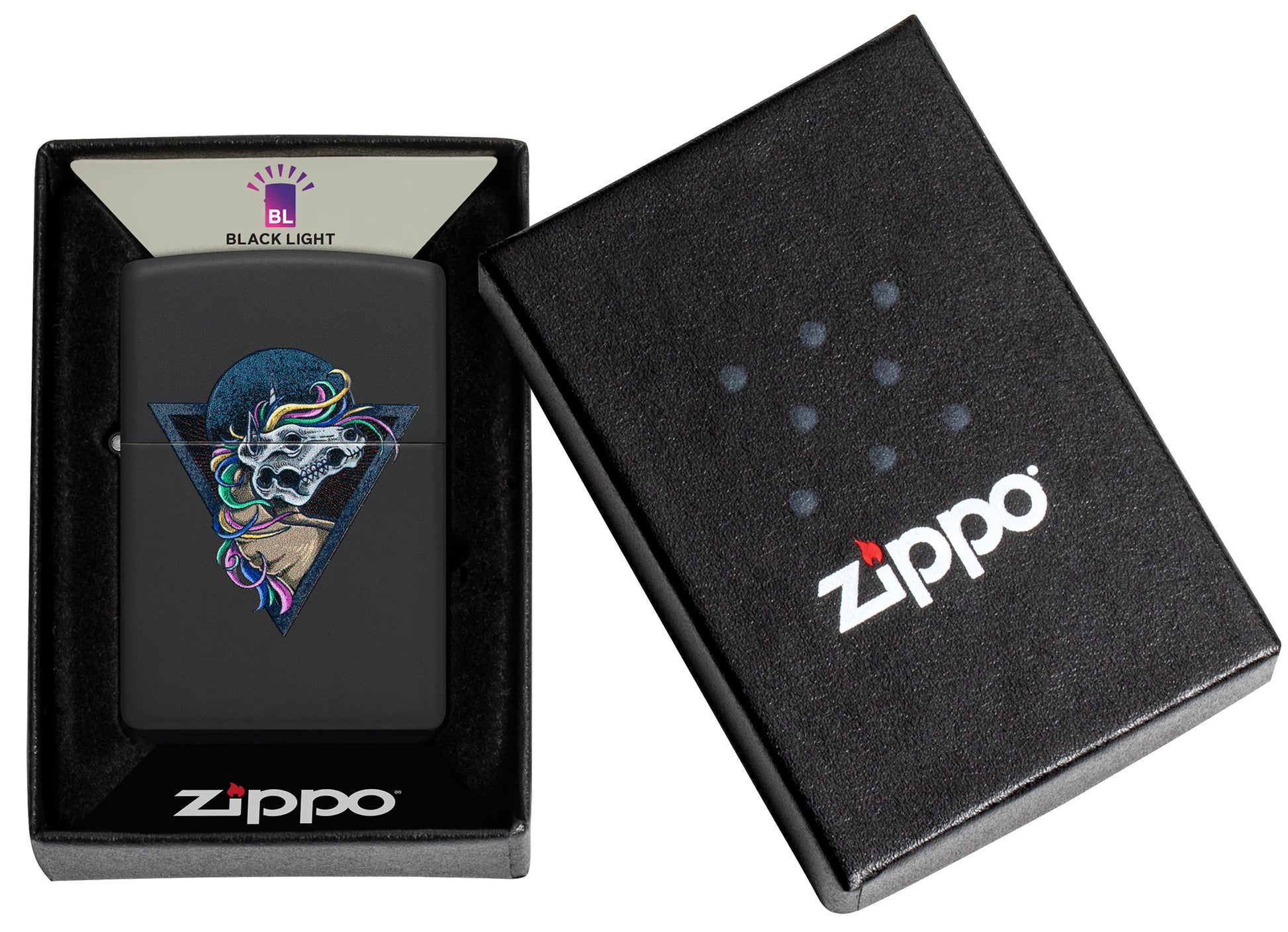 - Genuine Zippo windproof lighter with the unmistakable Zippo "click".