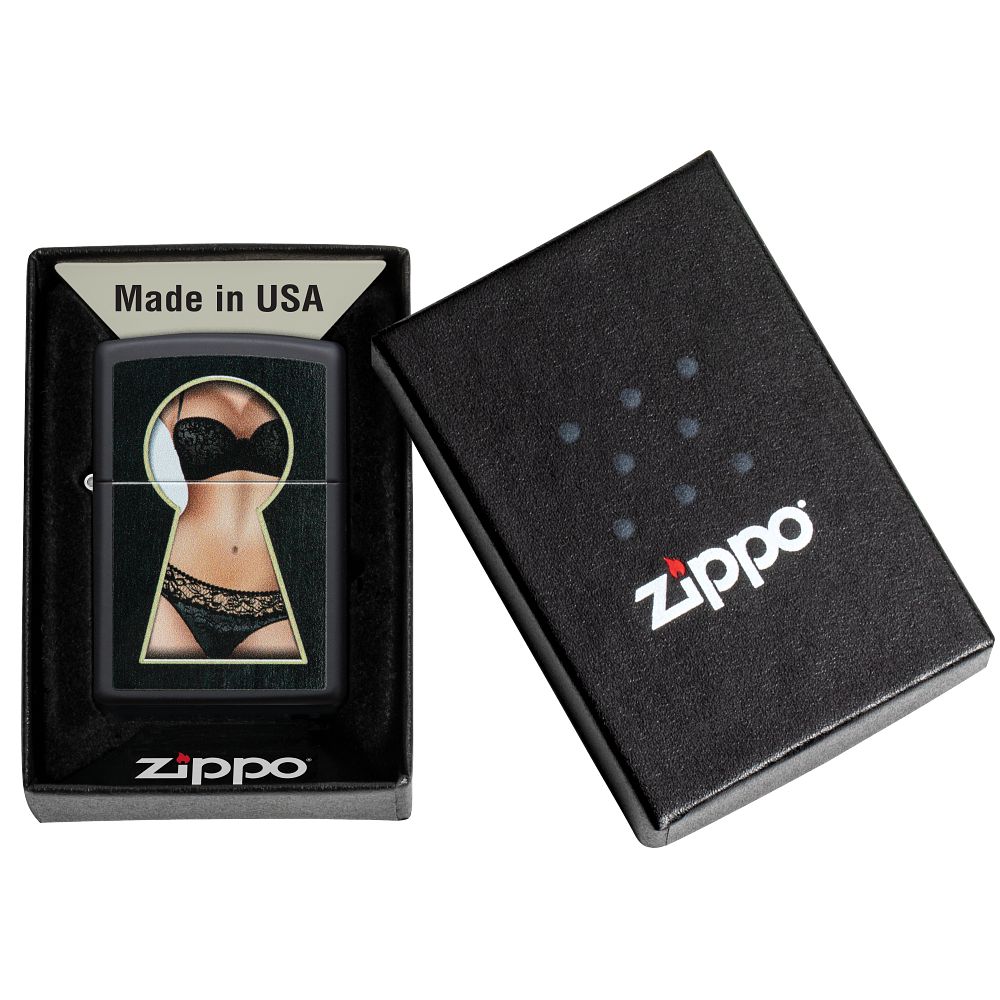 - Genuine Zippo windproof lighter with the unmistakable Zippo "click".