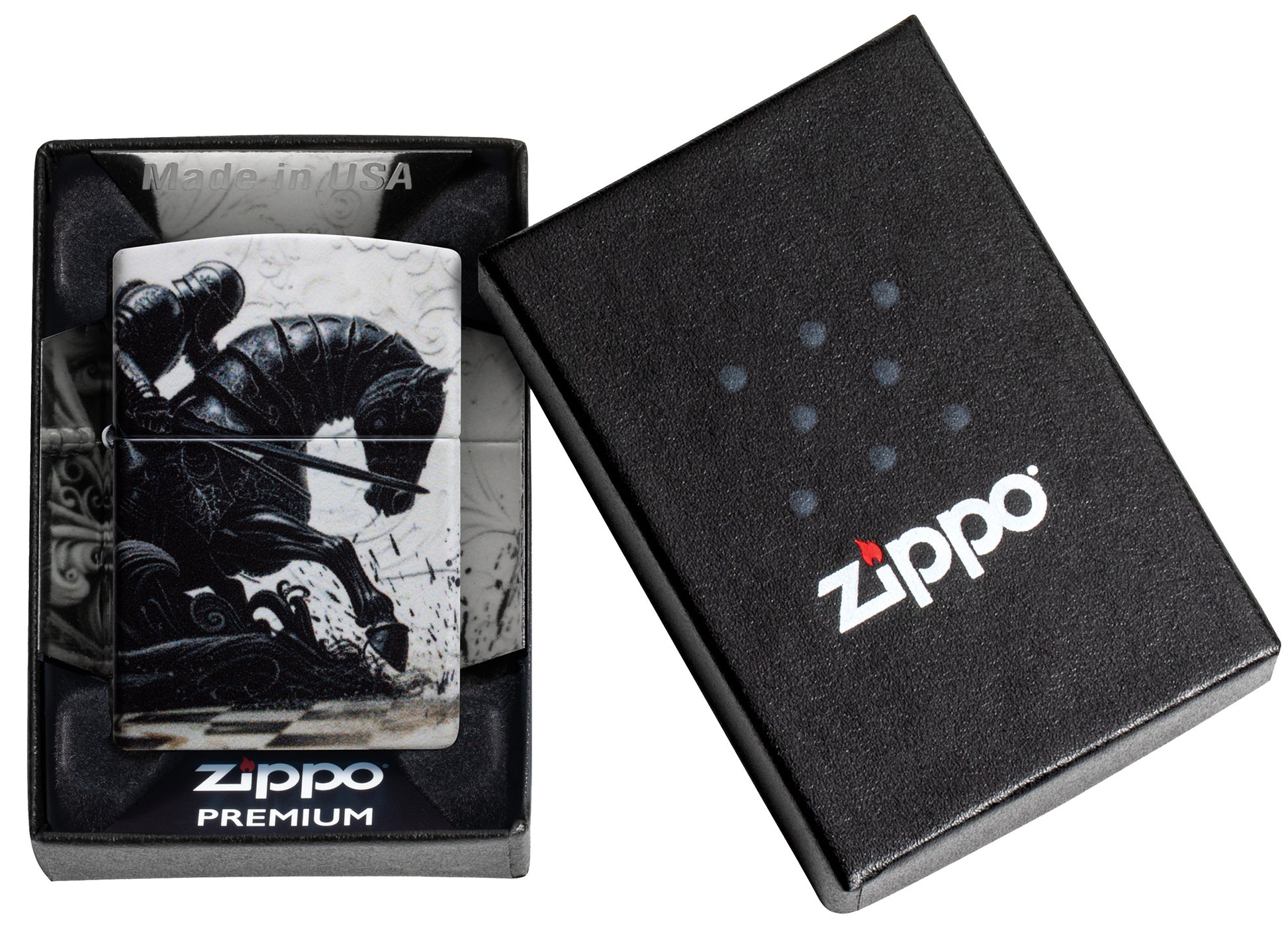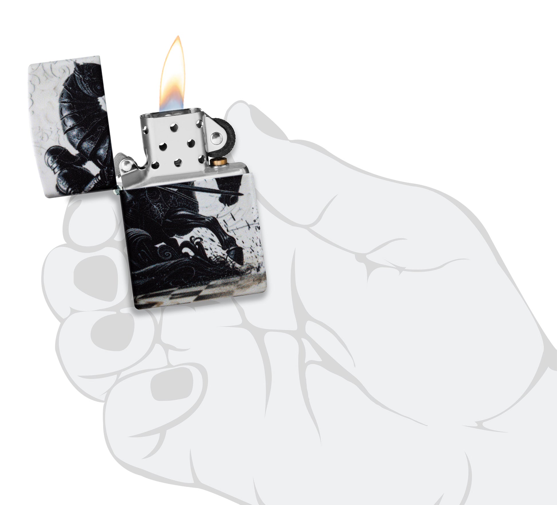 Your favorite chess game comes to life on this classic 540° Color lighter. The seamless design features lifelike Knights in a thrilling battle and extends around all sides of the piece.