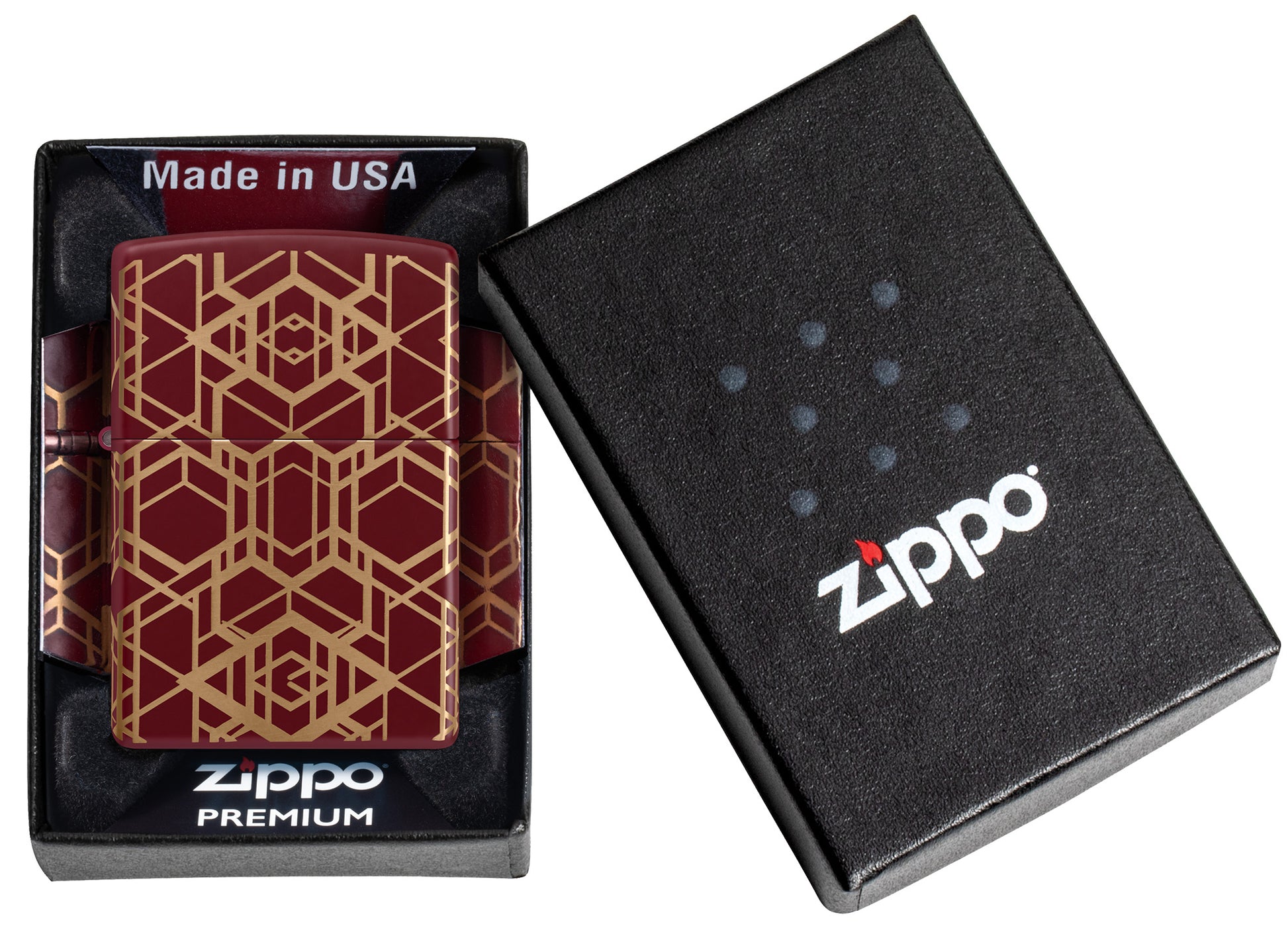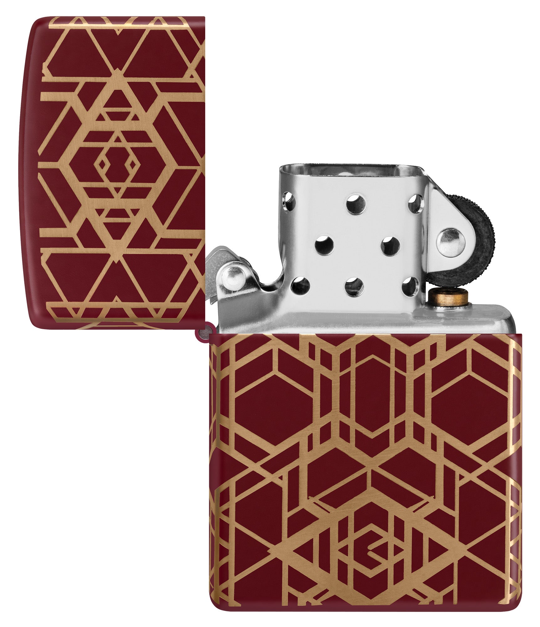 Mesmerizing lines extend around all sides of this classic Merlot lighter in a crisp and seamless Laser 360° design, revealing the lighter's brilliant brass finish beneath the matte finish.