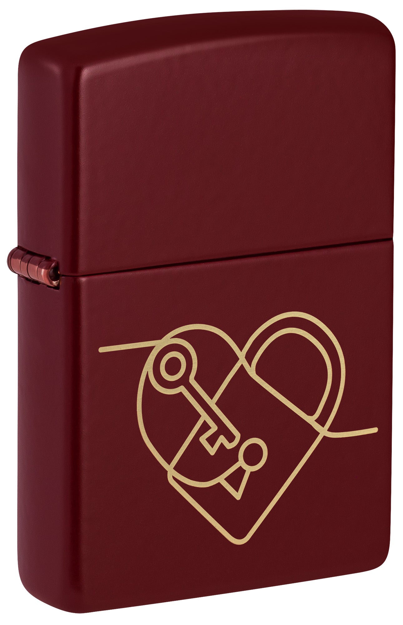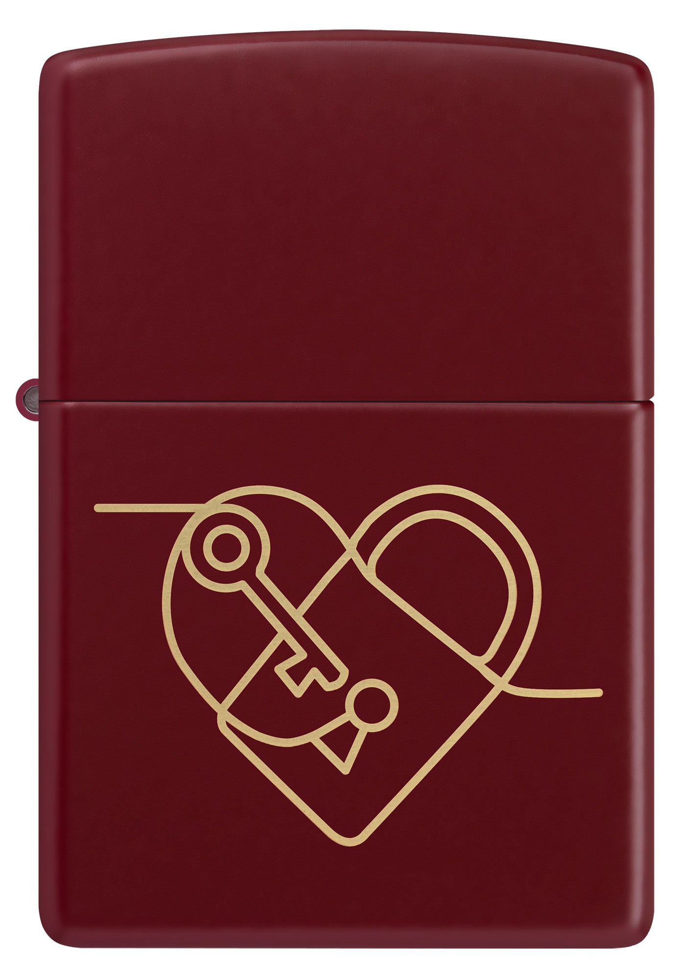 An elegant lock and key form the shape of a heart on the surface of this classic Merlot lighter in a minimalistic Laser Engrave design.