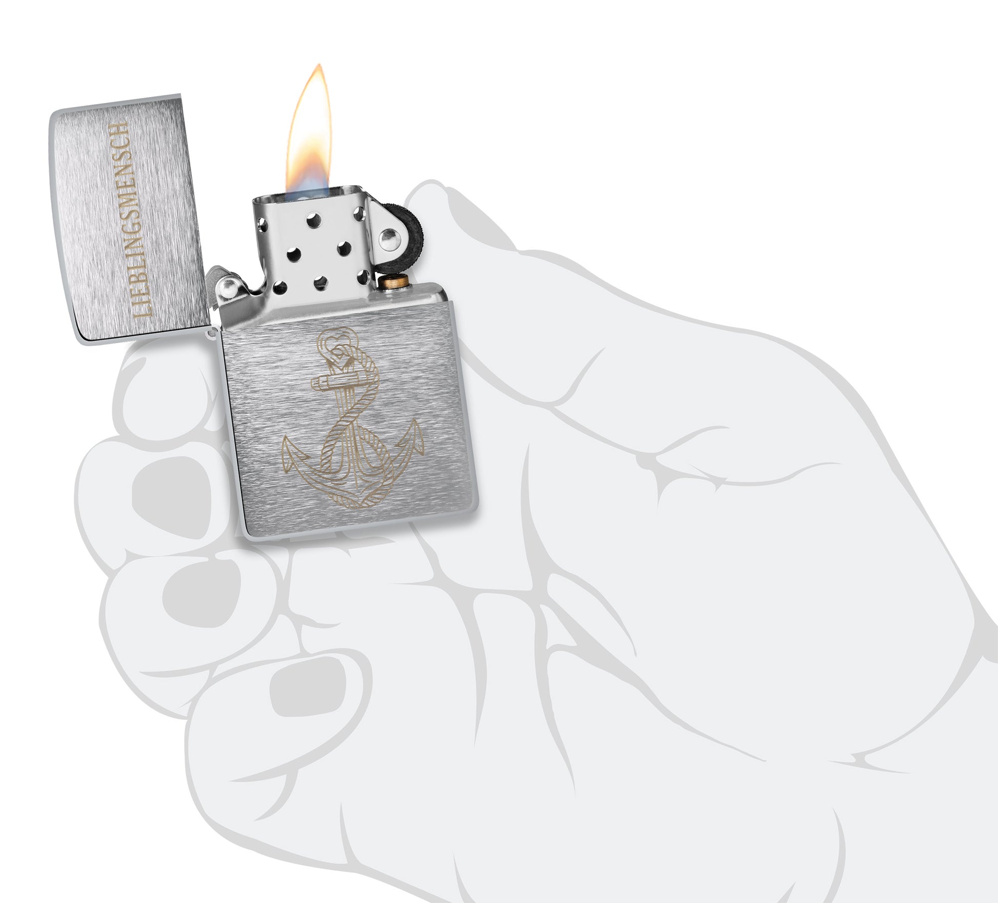 - Genuine Zippo windproof lighter with the unmistakable Zippo "click".