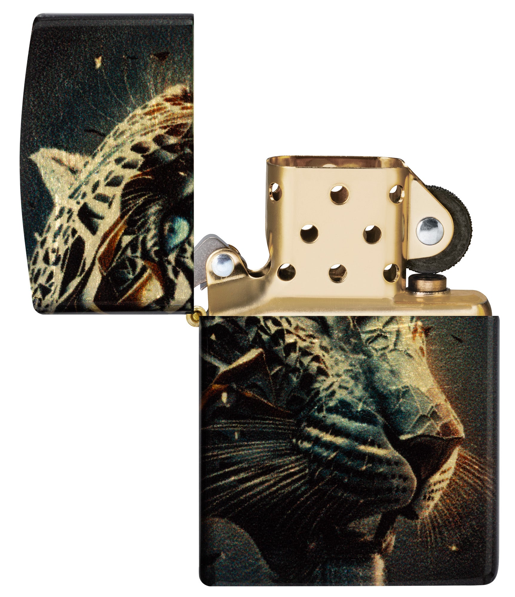 Brilliant shards of twisted metal converge to form a fierce panther head on this classic Tumbled Brass lighter in a dazzling 540° Fusion design.
