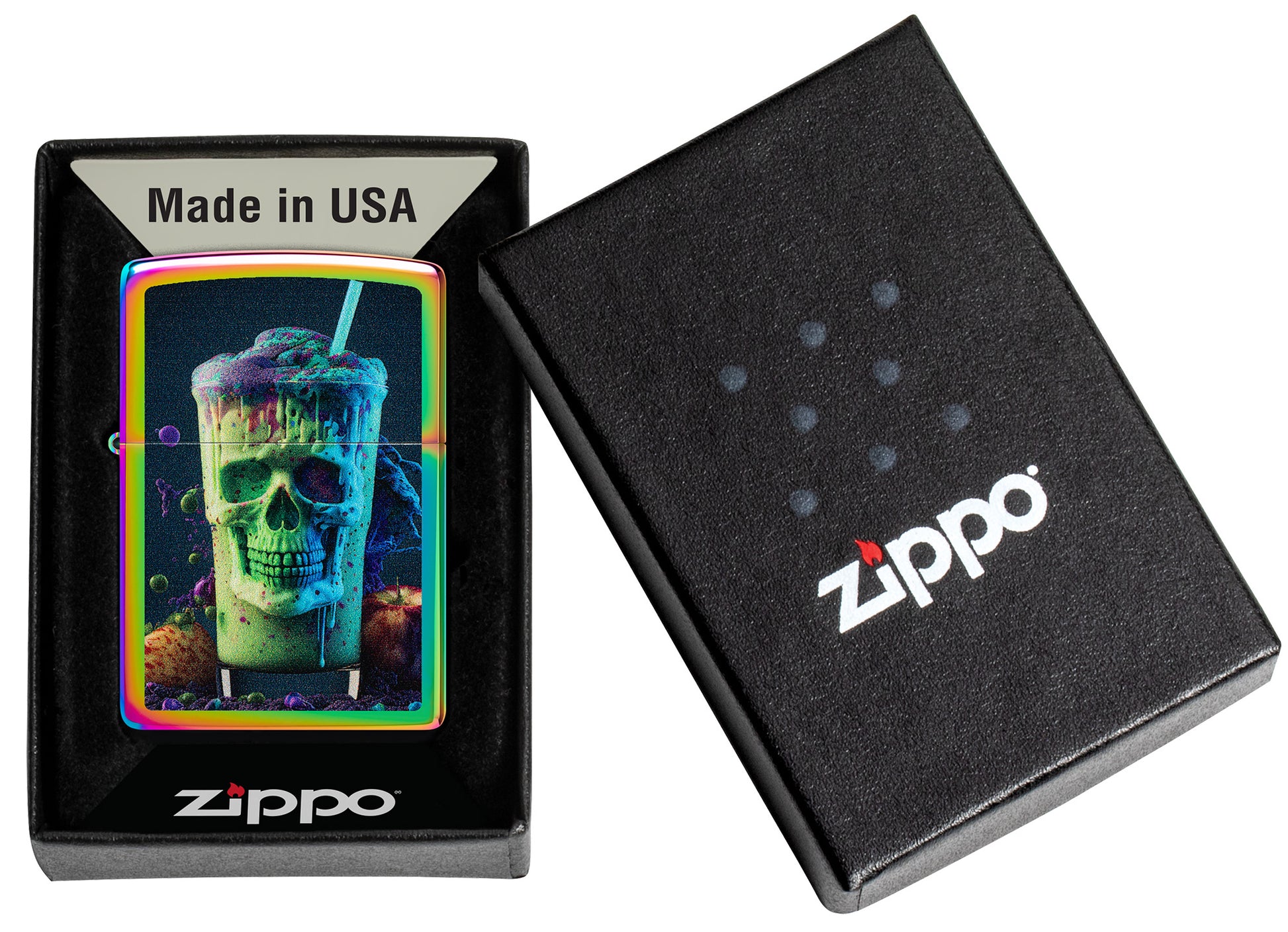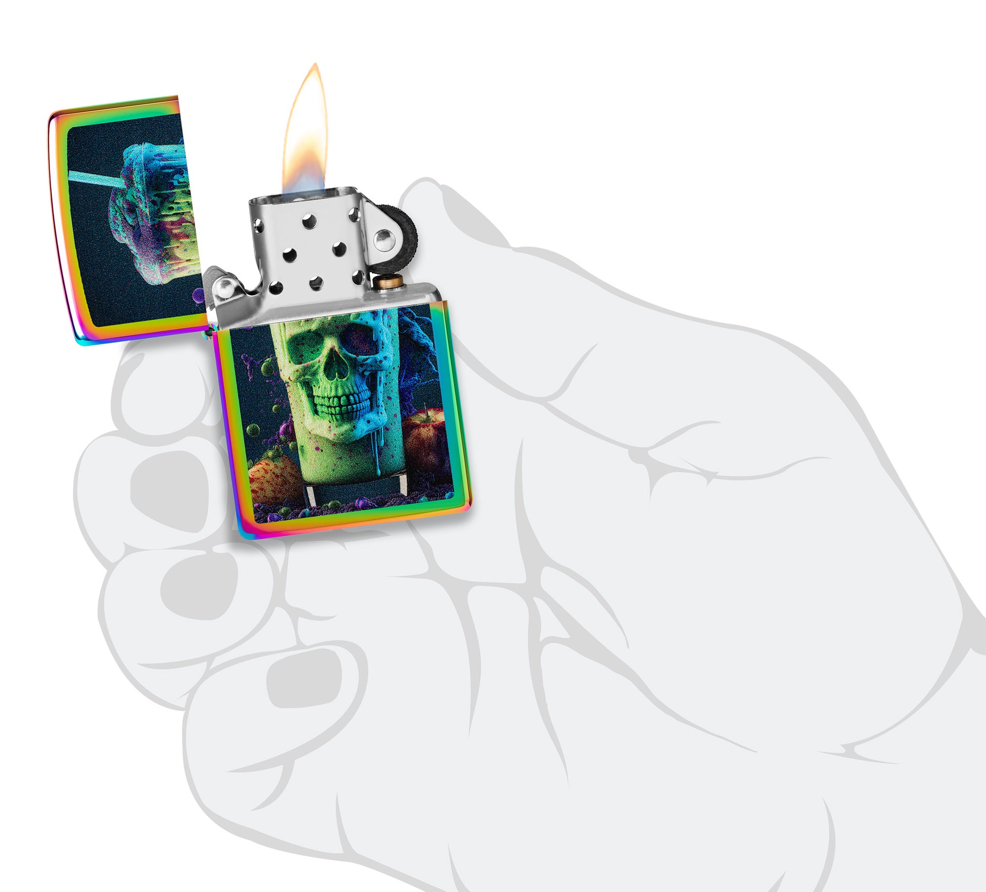 Treat yourself to this classic Multi Color lighter. A meancing skull makes for a deathly milkshake in the vibrant Color Image design.