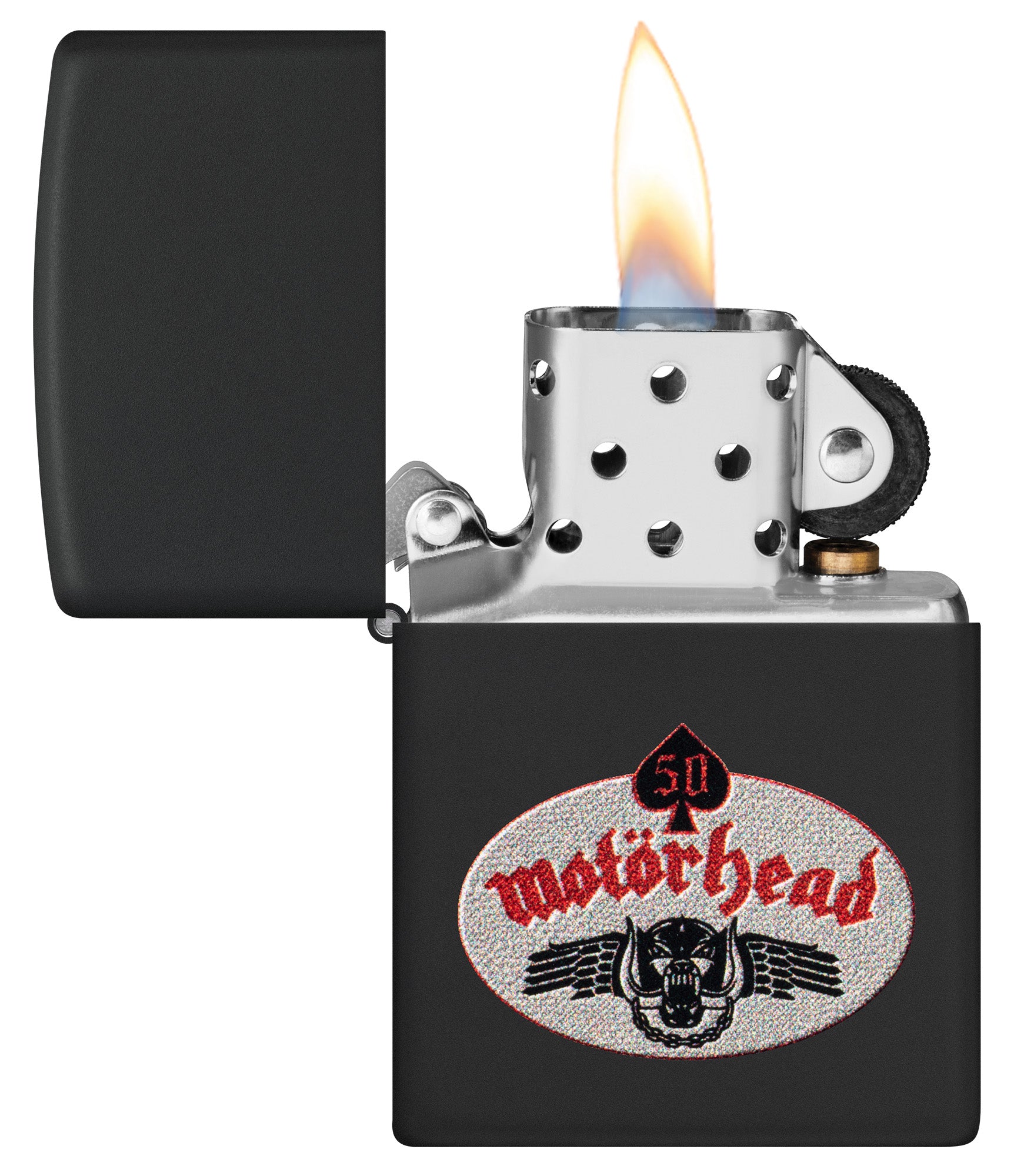 Celebrate 50 years of Motörhead's iconic music with this limited-edition Black Matte lighter. The band's 50th anniversary logo and Warpig mascot are replicated in the Color Image design. Only 100 models are available in honor of this special occasion.