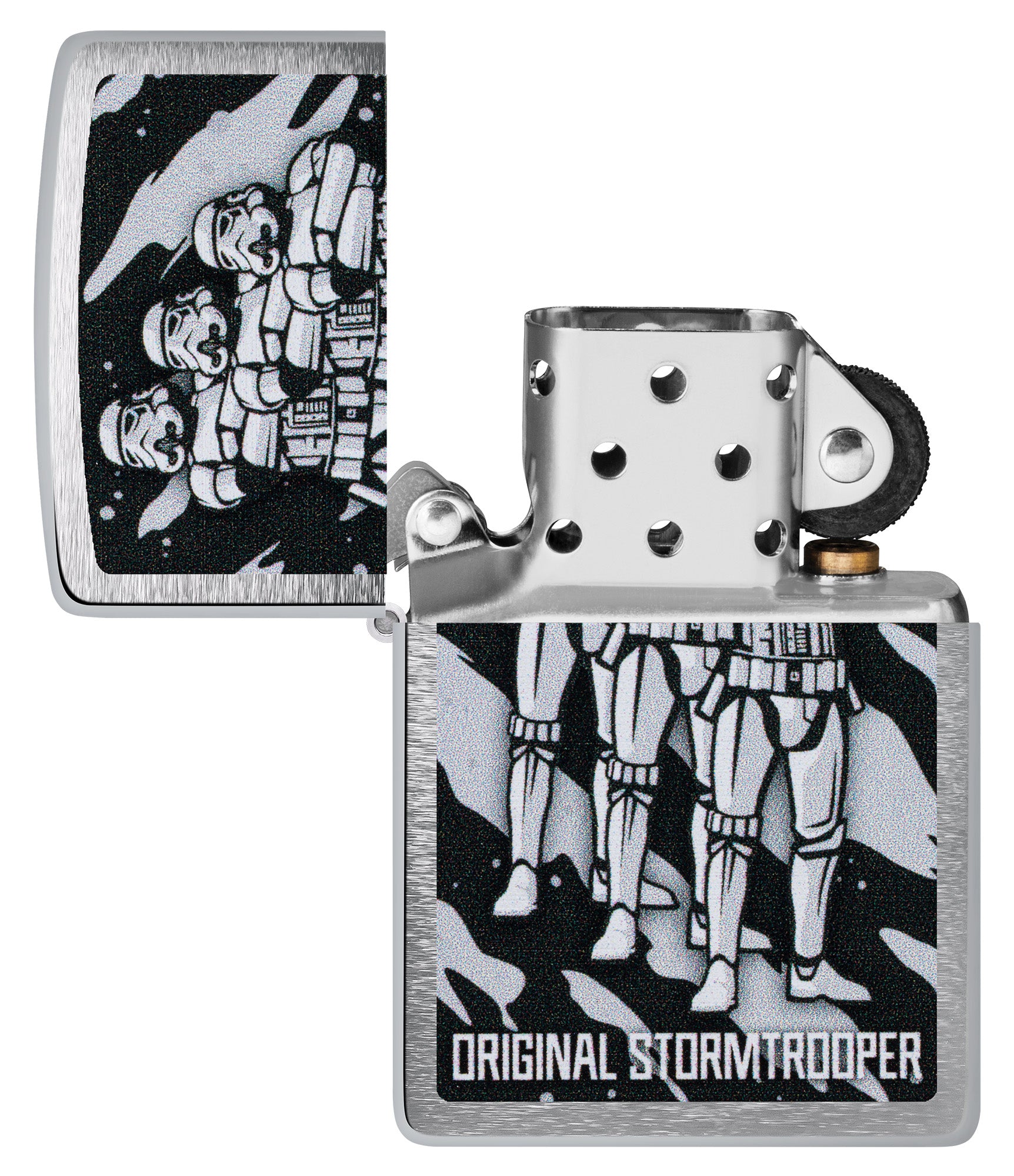 Perhaps the most recognisable fighting force in the galaxy, the iconic Original Stormtrooper is right at home on this classic Brushed Chrome lighter. A whole squad of the beloved Troopers stand ready to carry out their orders in the bold Color Image design.