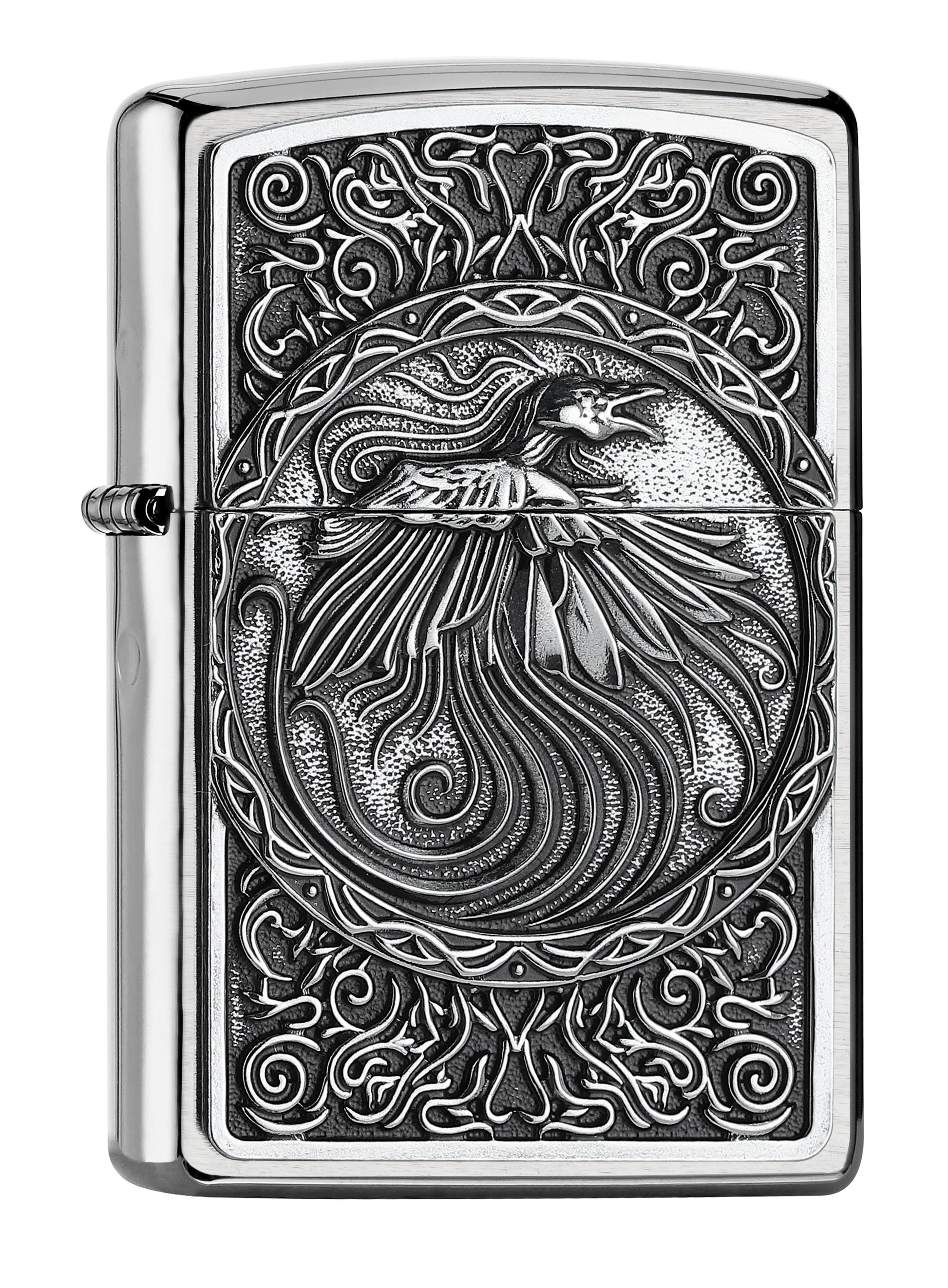 The Phoenix, rising from the ashes. A detailed Emblem design on a chrome brushed lighter. Comes packaged in Zippo's premium box. For optimal performance, fill with Zippo lighter fuel.