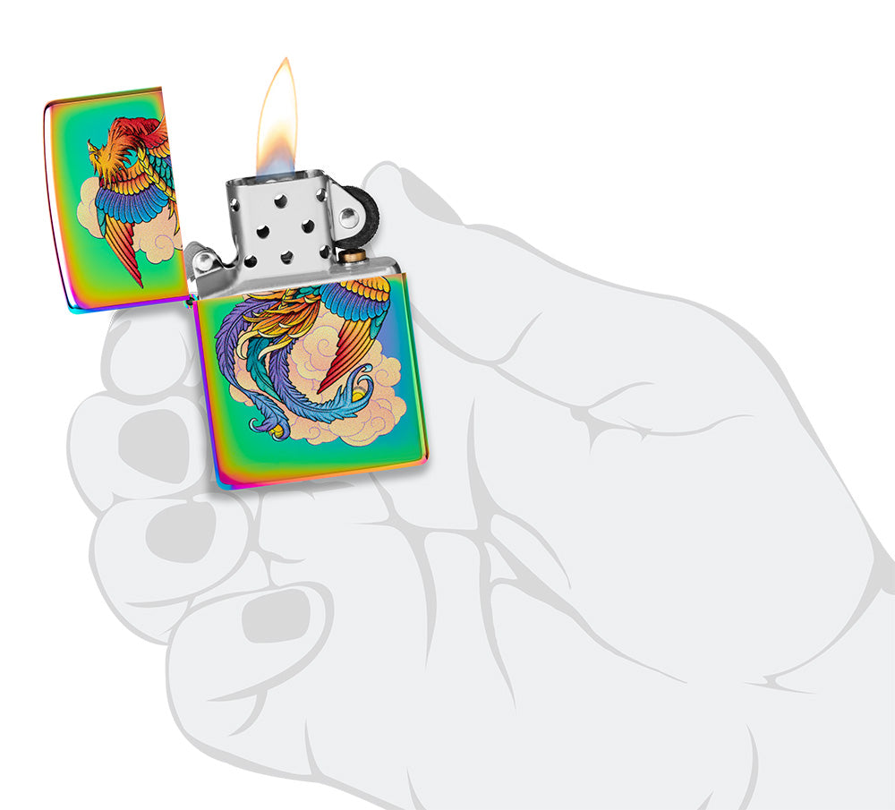 A vibrant and majestic phoenix soars across the surface of this dazzling Multi Color lighter, which mingles gracefully with the mesmerizing Color Image design.