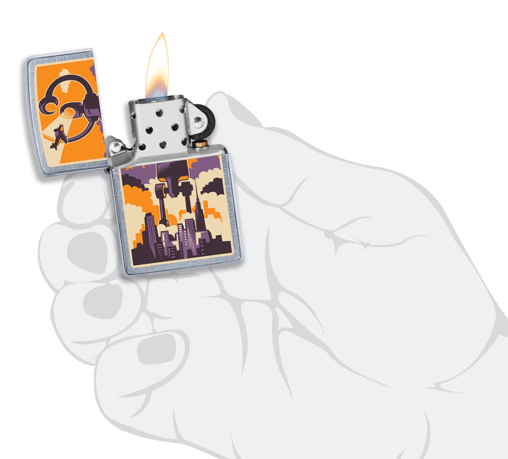 - Genuine Zippo windproof lighter with the unmistakable Zippo "click".
