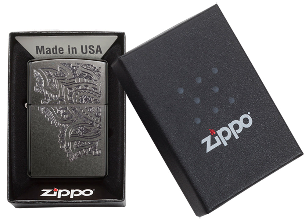 - Genuine Zippo windproof lighter with the unmistakable Zippo "click".