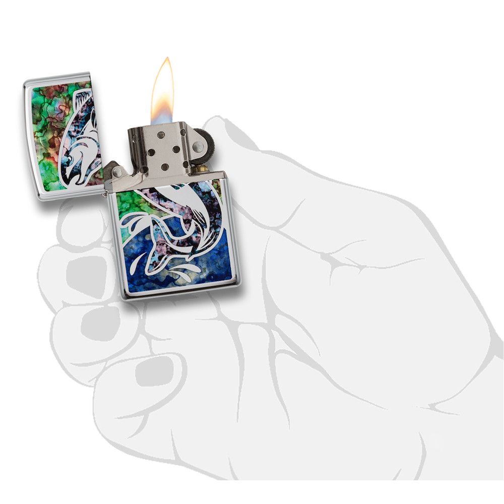 - Genuine Zippo windproof lighter with the unmistakable Zippo "click".