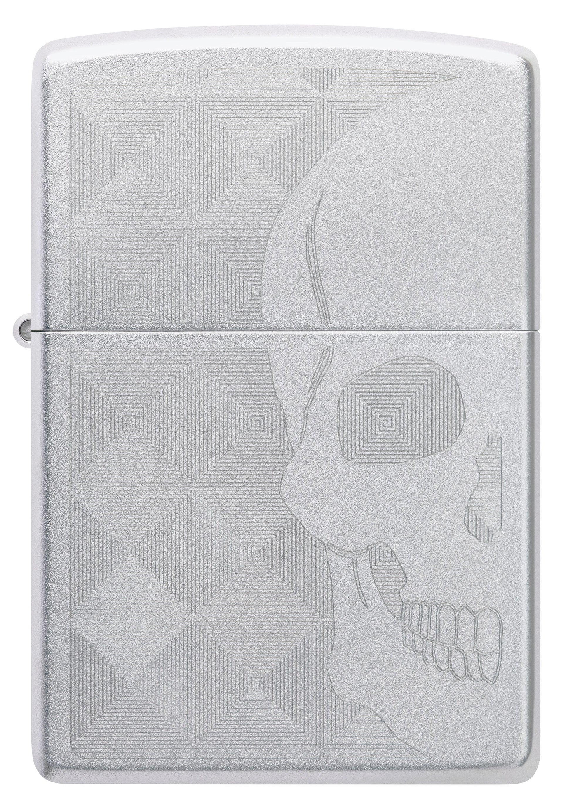 Subtly spooky, we used Auto Engrave on this Satin Chrome lighter to depict a skull in the negative space of this mesmerizing geometric design.