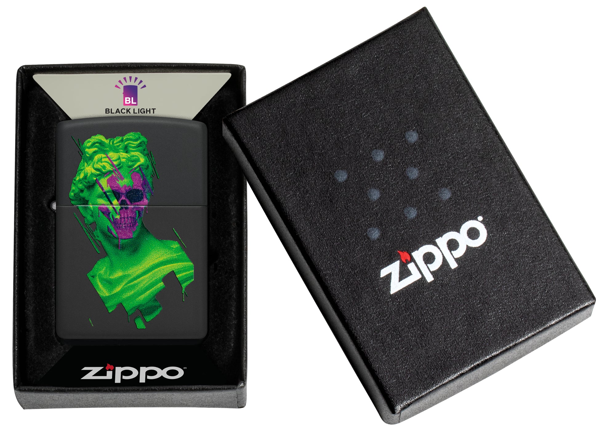 - Genuine Zippo windproof lighter with the unmistakable Zippo "click".