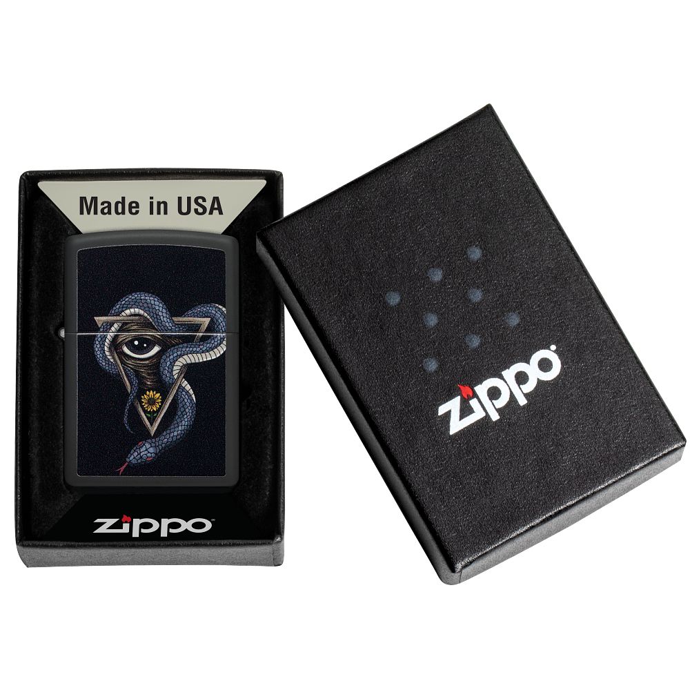 - Genuine Zippo windproof lighter with the unmistakable Zippo "click".