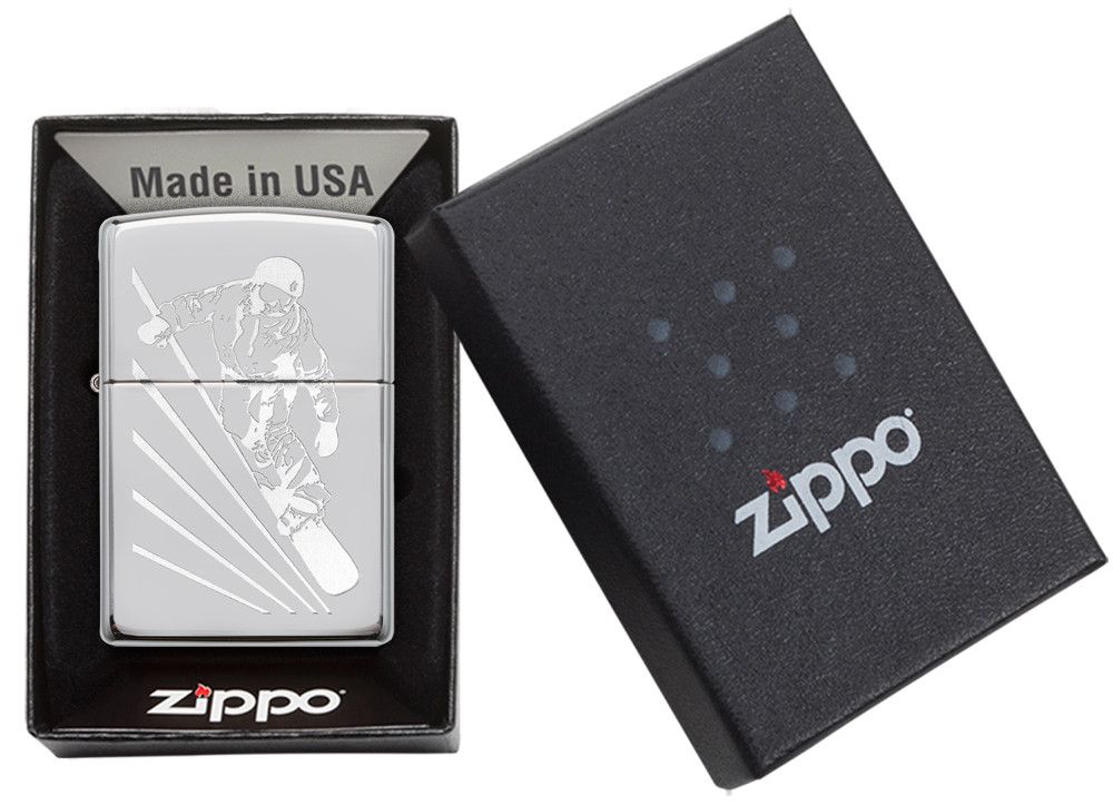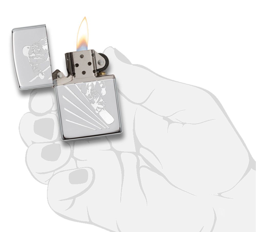 - Genuine Zippo windproof lighter with the unmistakable Zippo "click".