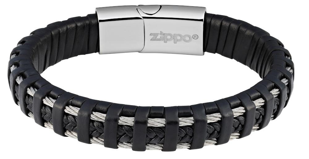 Braided leather bracelet, with two thin wire cords and wrapped in a flat leather band. The ends of the bracelet simply come together with the magnetic flat clasp guaranteeing a secure hold. The inside of the clasp is decorated with the original Zippo logo. On the outside is the Zippo flame.