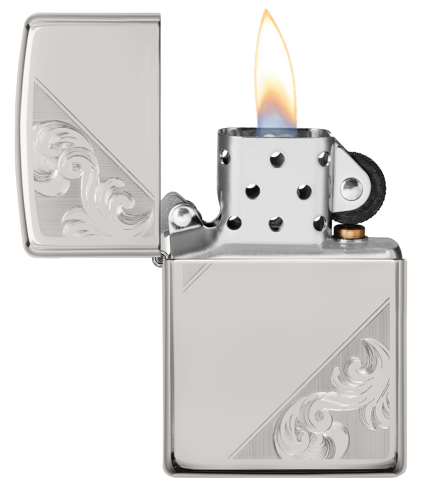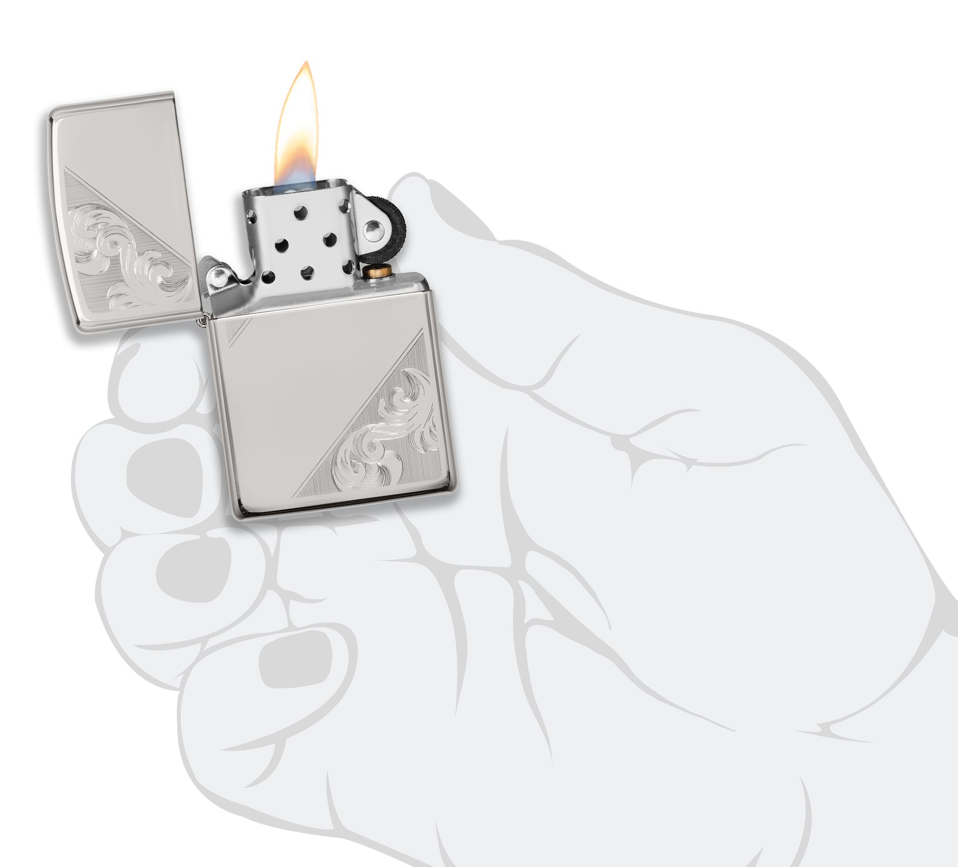 The intricate swirls and flourishes of this diagonal filigree design are created using Zippo’s classic Auto Engraving technique, lending highlights and depth to the High Polish Finish Sterling Silver Lighter. Crisp and clean effects are made with dimensional fill strokes that enhance the elegant jewelry design. Comes packaged in a gift box. For optimal performance, fill with Zippo lighter fuel.