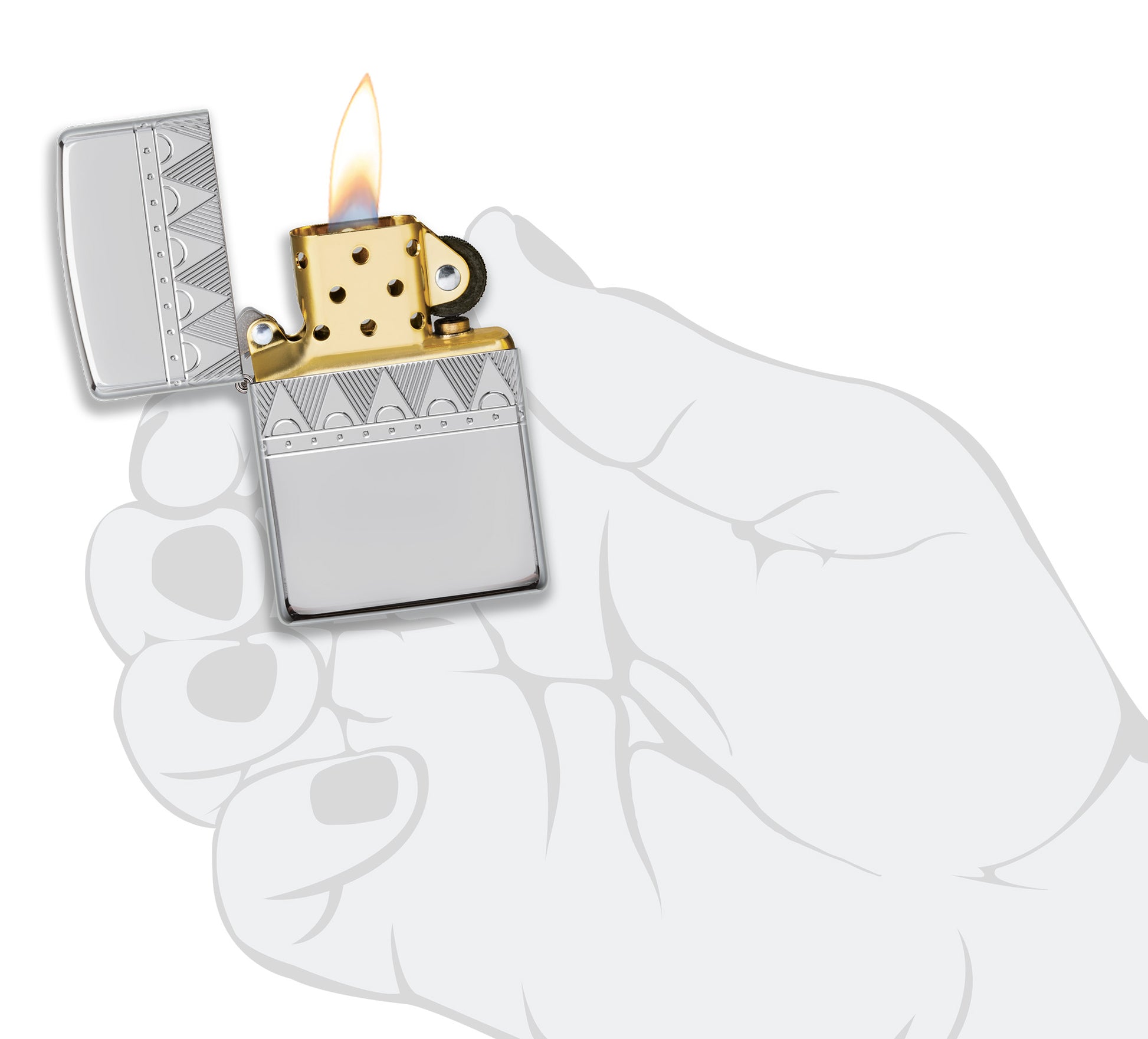 An Armor® High Polish Sterling Silver Zippo lighter stands out from the crowd with a stately diamond pattern design seamlessly carved around the lid line using Zippo’s MultiCut method. The design radiates with an understated elegance from an elaborate array of lines that form a band of diamonds on the finish. Comes packaged in a gift box. For optimal performance, fill with Zippo lighter fuel.