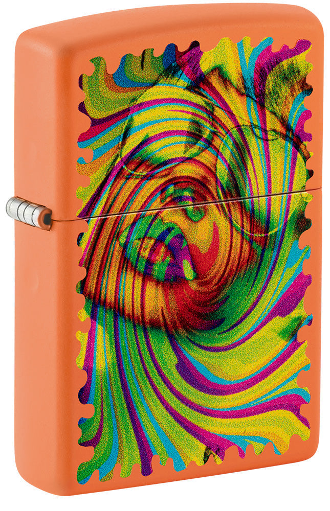 You can't miss this bold and playful Orange Matte lighter. The swirling Color Image design centers around a pop-art portrait in vibrant color.