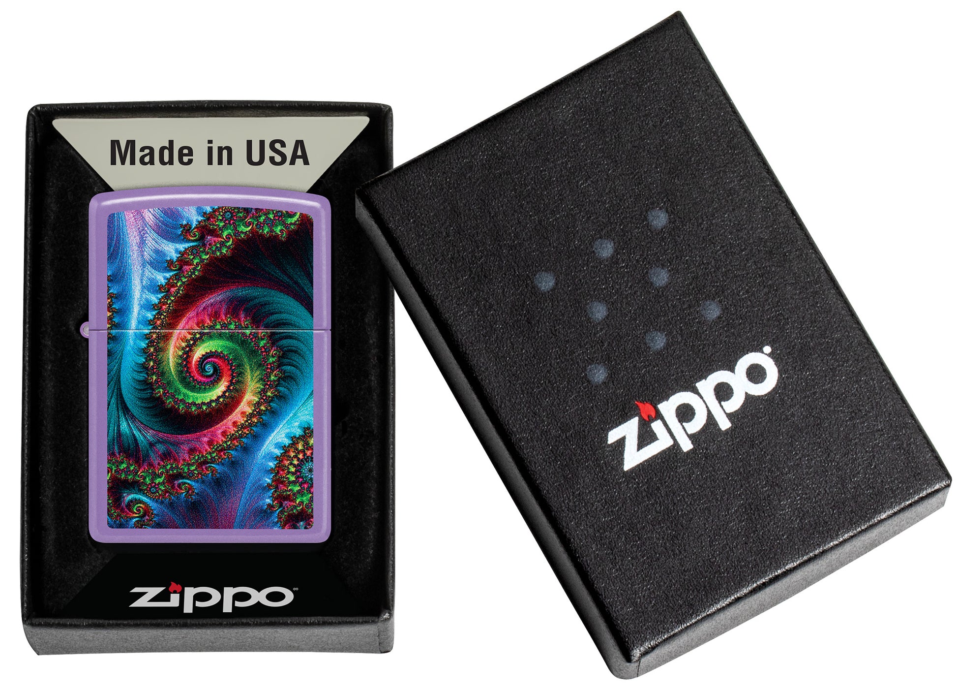 Immerse yourself in the captivating patterns on this classic Smoky Lavender lighter. The mesmerizing Color Image design depicts a hypnotizing swirl of vibrant colour and intricate detail.