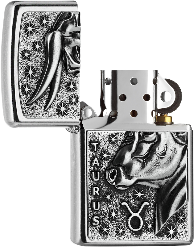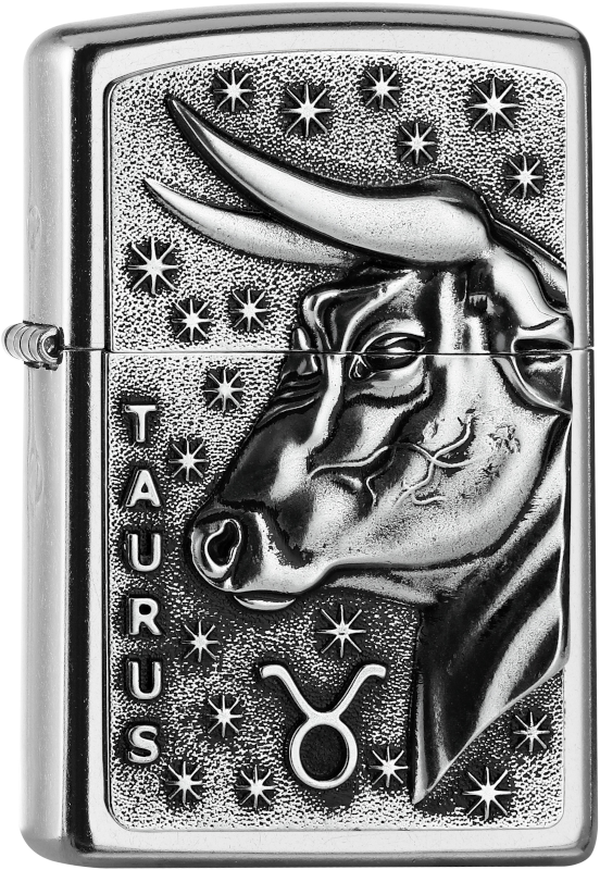 The Zodiac sign of Taurus is one of the twelve signs of the Zodiac. A detailed star-lit Emblem design on a Street Chrome Windproof Zippo lighter. Comes packaged in a gift box. For optimal performance fill with Zippo lighter fuel.