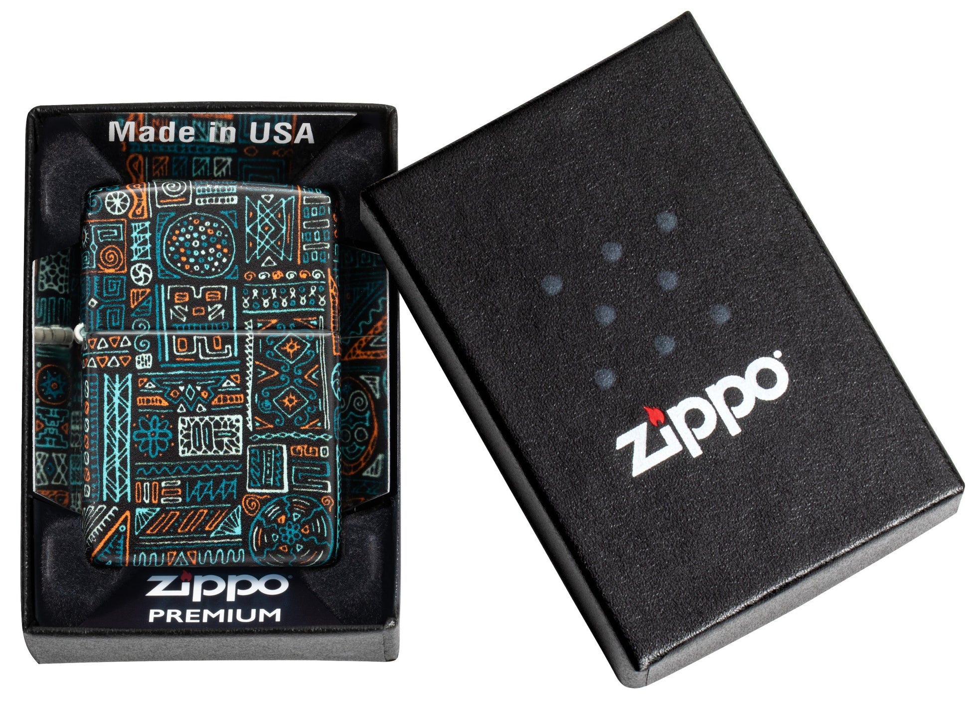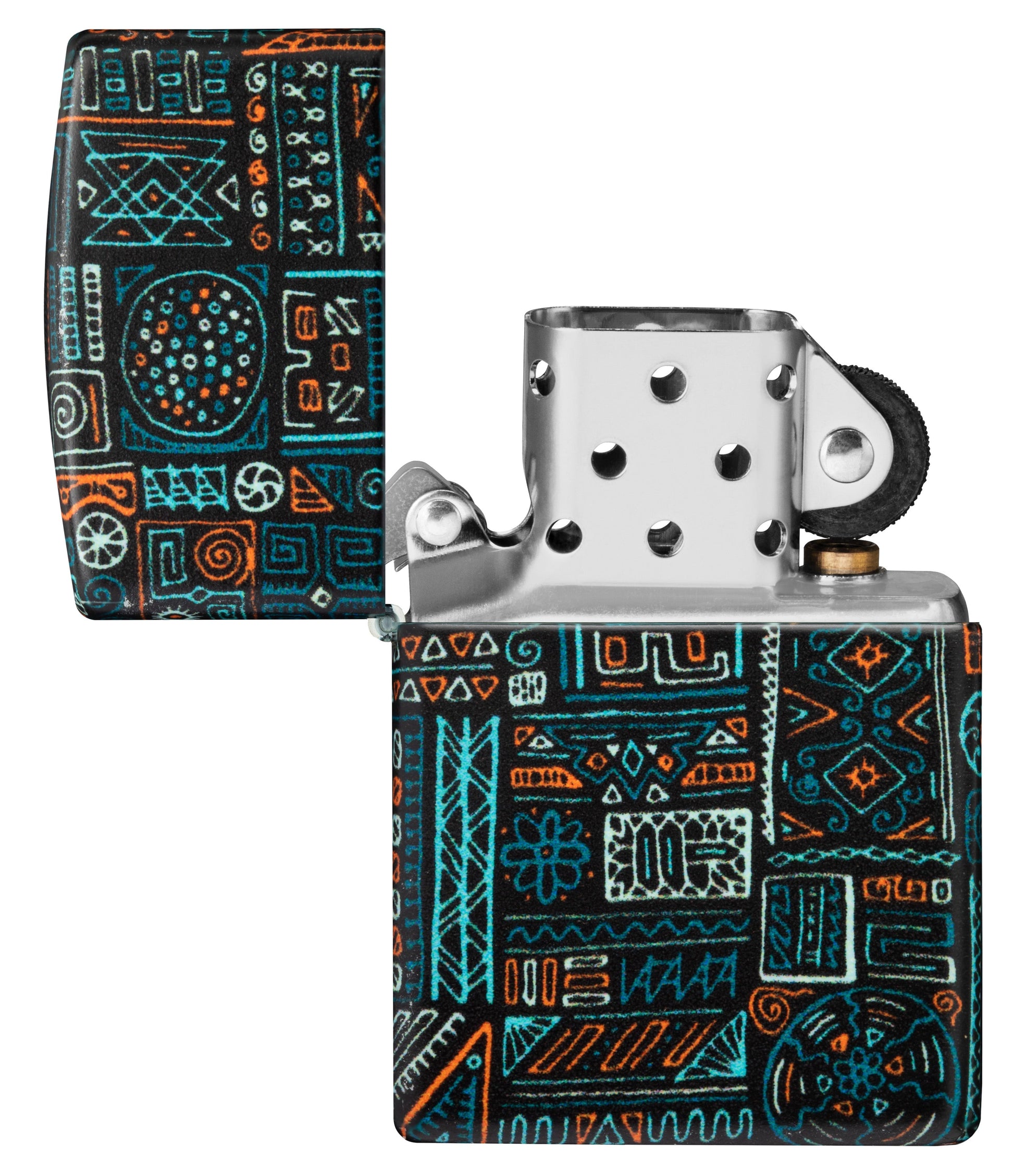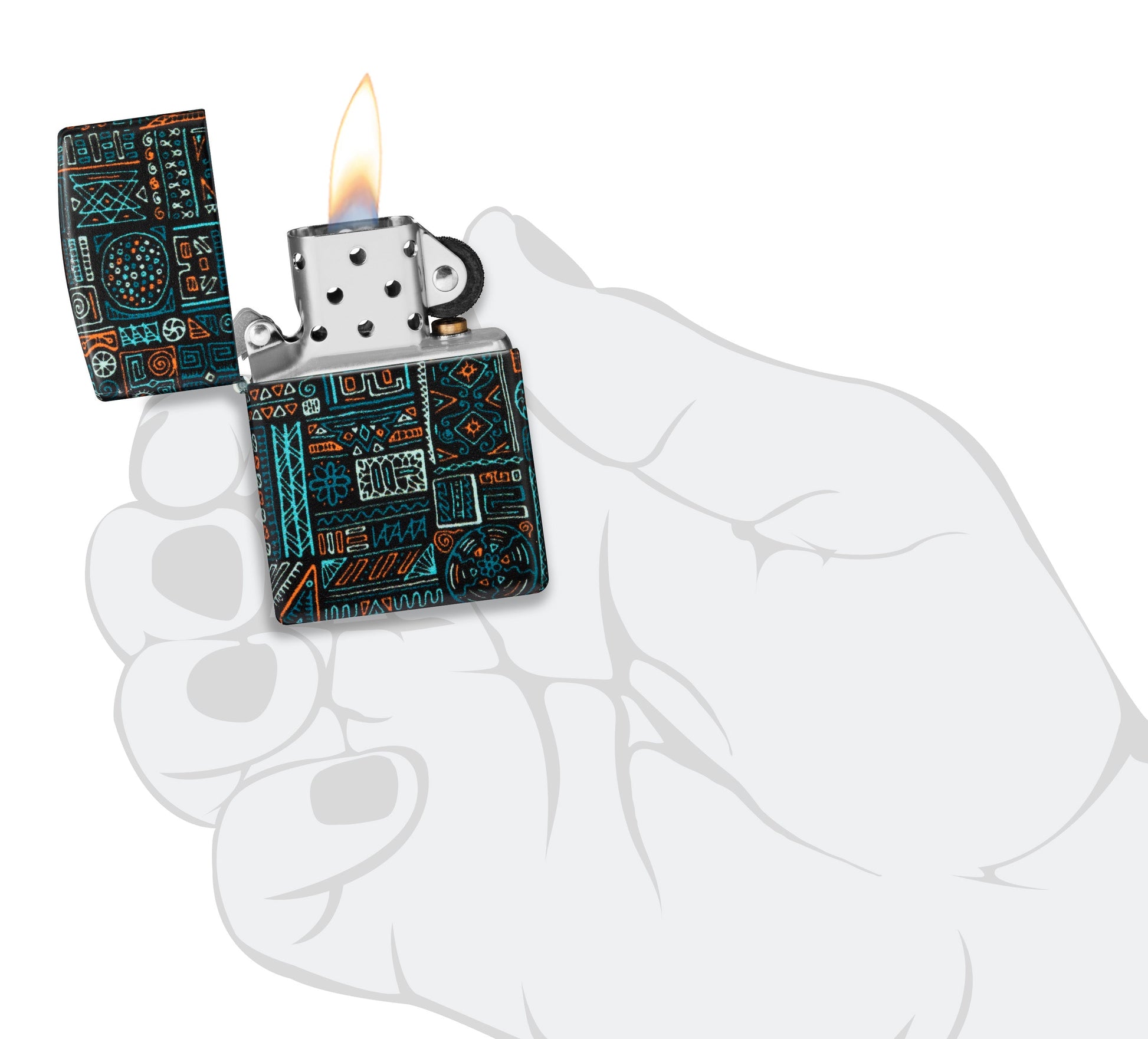 Das Design Tribal Pattern African ist ein faszinierendes Feuerzeug, das die reiche kulturelle Vielfalt des afrikanischen Kontinents widerspiegelt. Mit seinem markanten Finish in 540° white matte und dem farbenfrohen Tribalmuster ist es ein absolutes Muss für alle, die sich ein Stück afrikanische Tradition und Eleganz aneignen möchten.